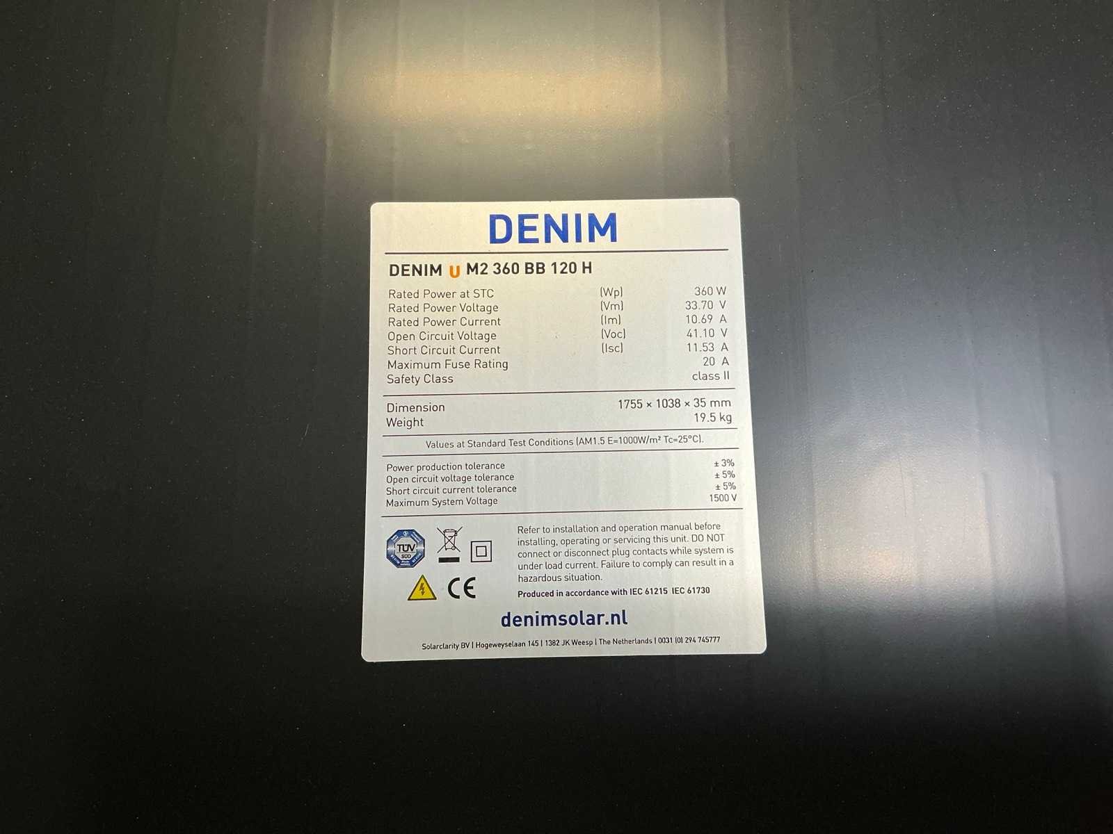 Betreft een ongebruikt product Merk: Denim Type: M2360BB120H Max. dc power: 360W Totale afmeting L: 1755mm Totale afmeting Breedte: 1038mm