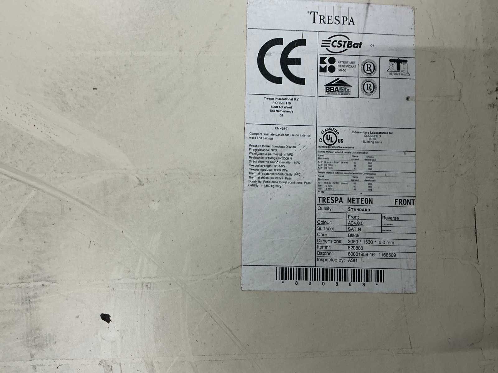 3x trespa 3050x1530 6 mm crème 1 trespa 3650x1860 , 2x 3650x 620, 1 x 2560x 620 kleur grijs mele