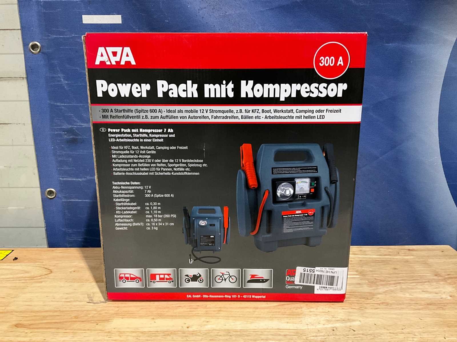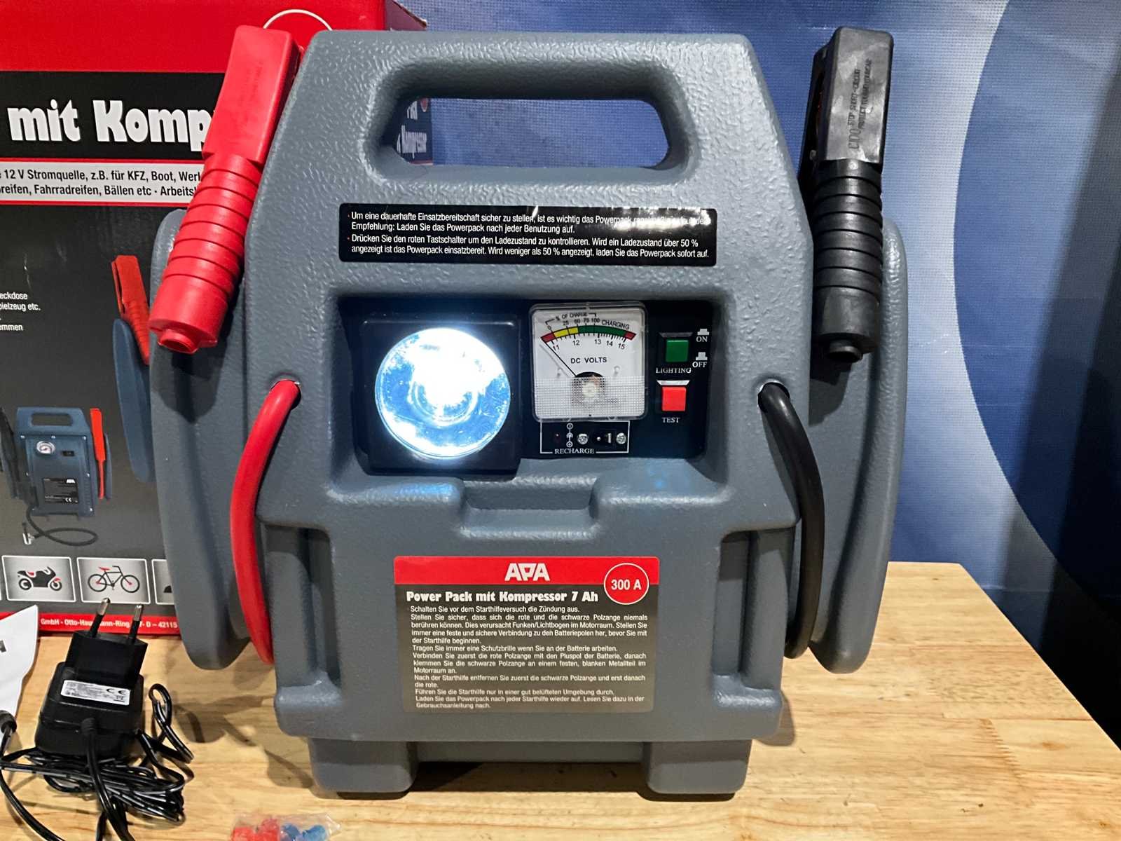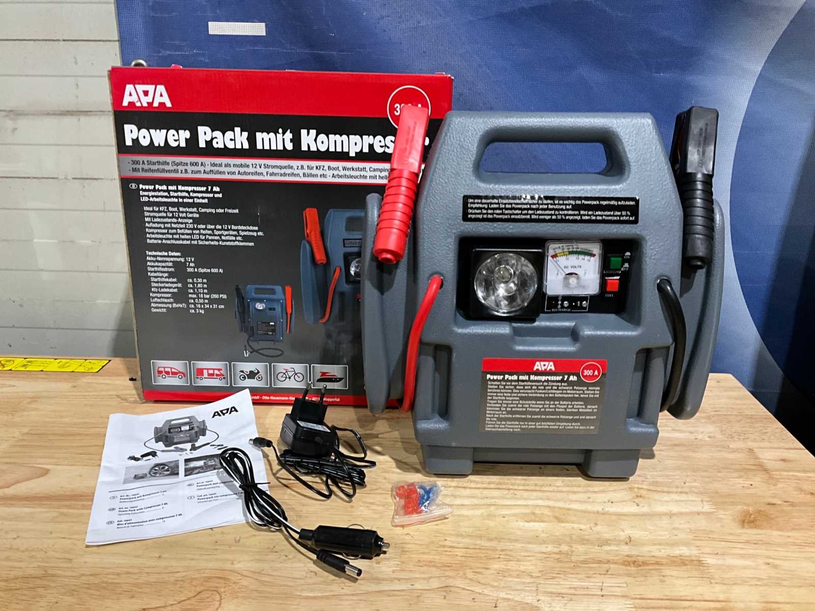 300A; inclusief netadapter; handleiding; ongebruikt in doos Merk: APA Type: Power Pack 300A Spanning: 12V Met starthulpfunctie: true Aansluiting: 230V