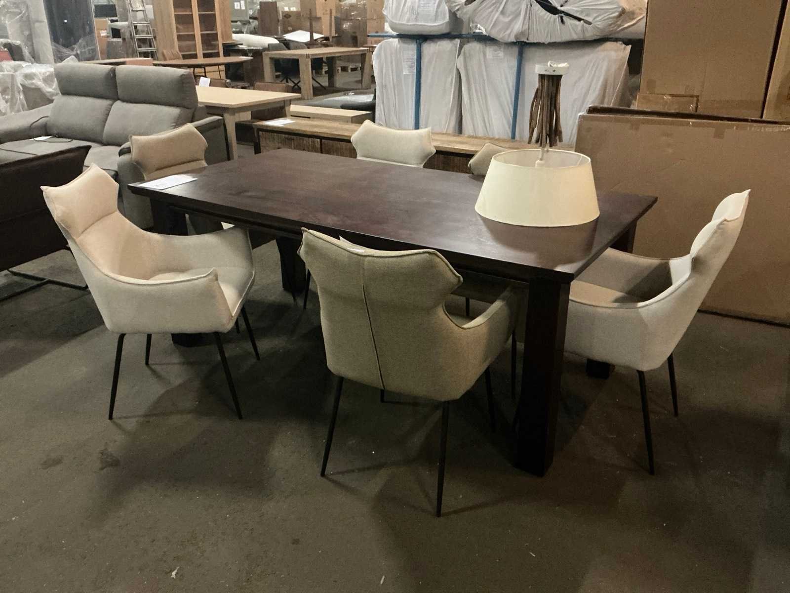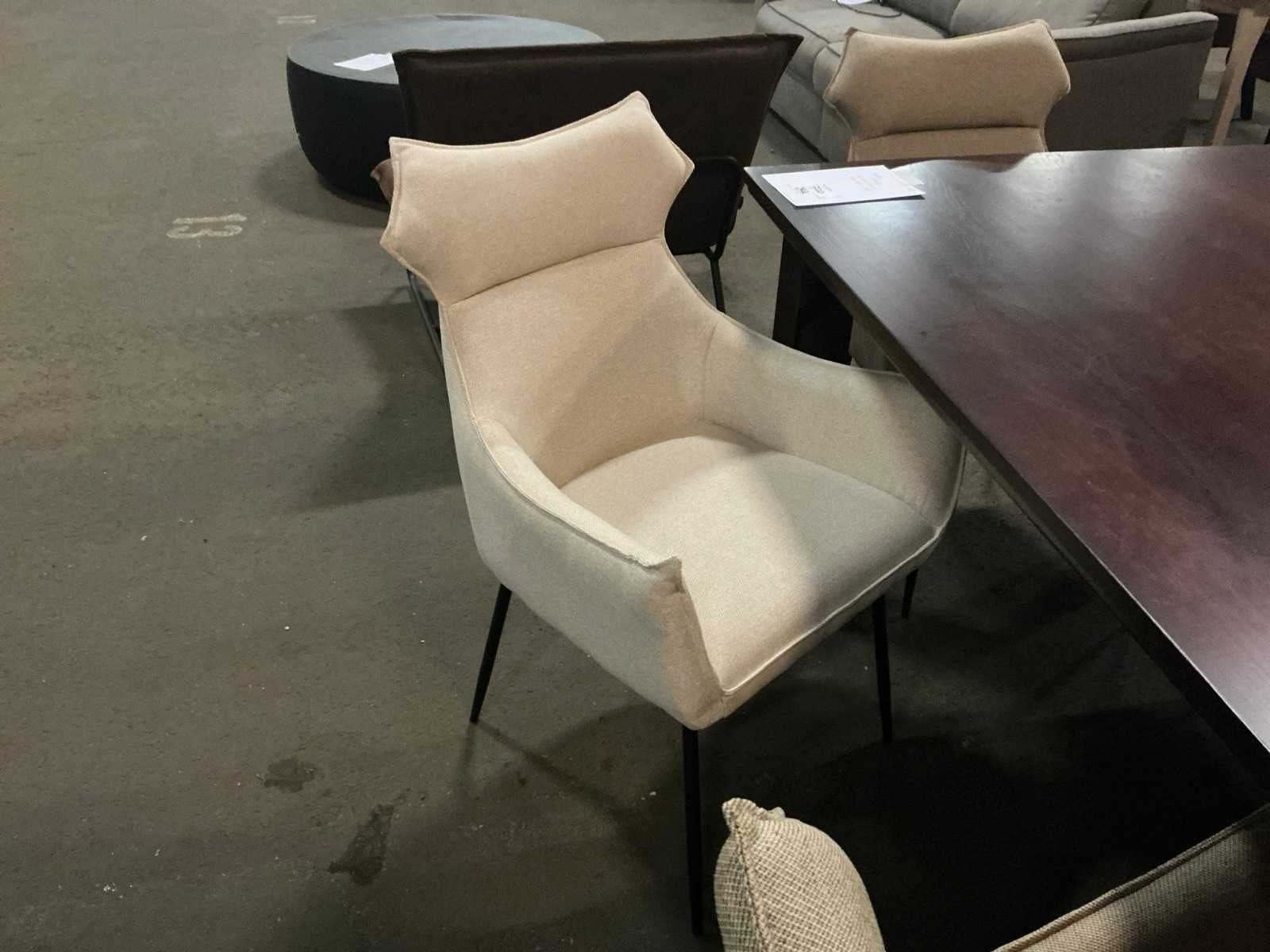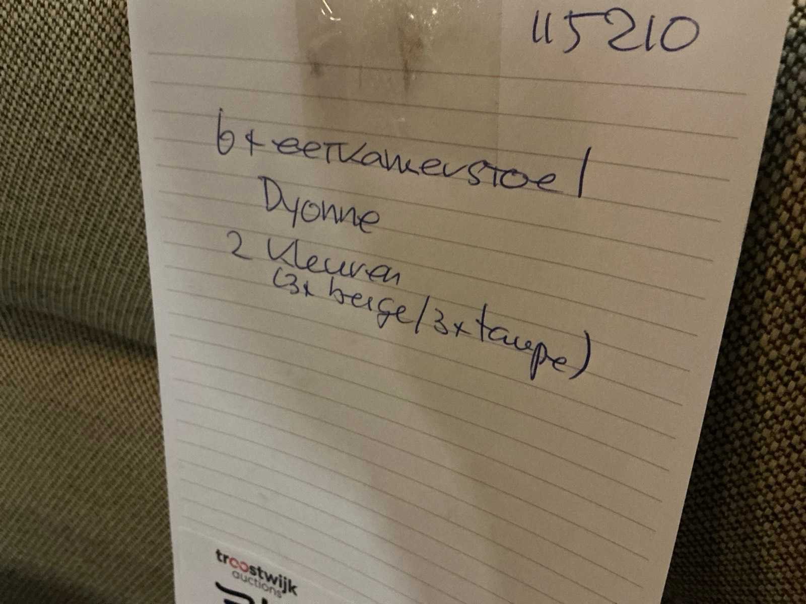 Model: Dyonne Kleur: Taupe (3x) beige (3x) Materiaal: Stoffen bekleding op metalen frame