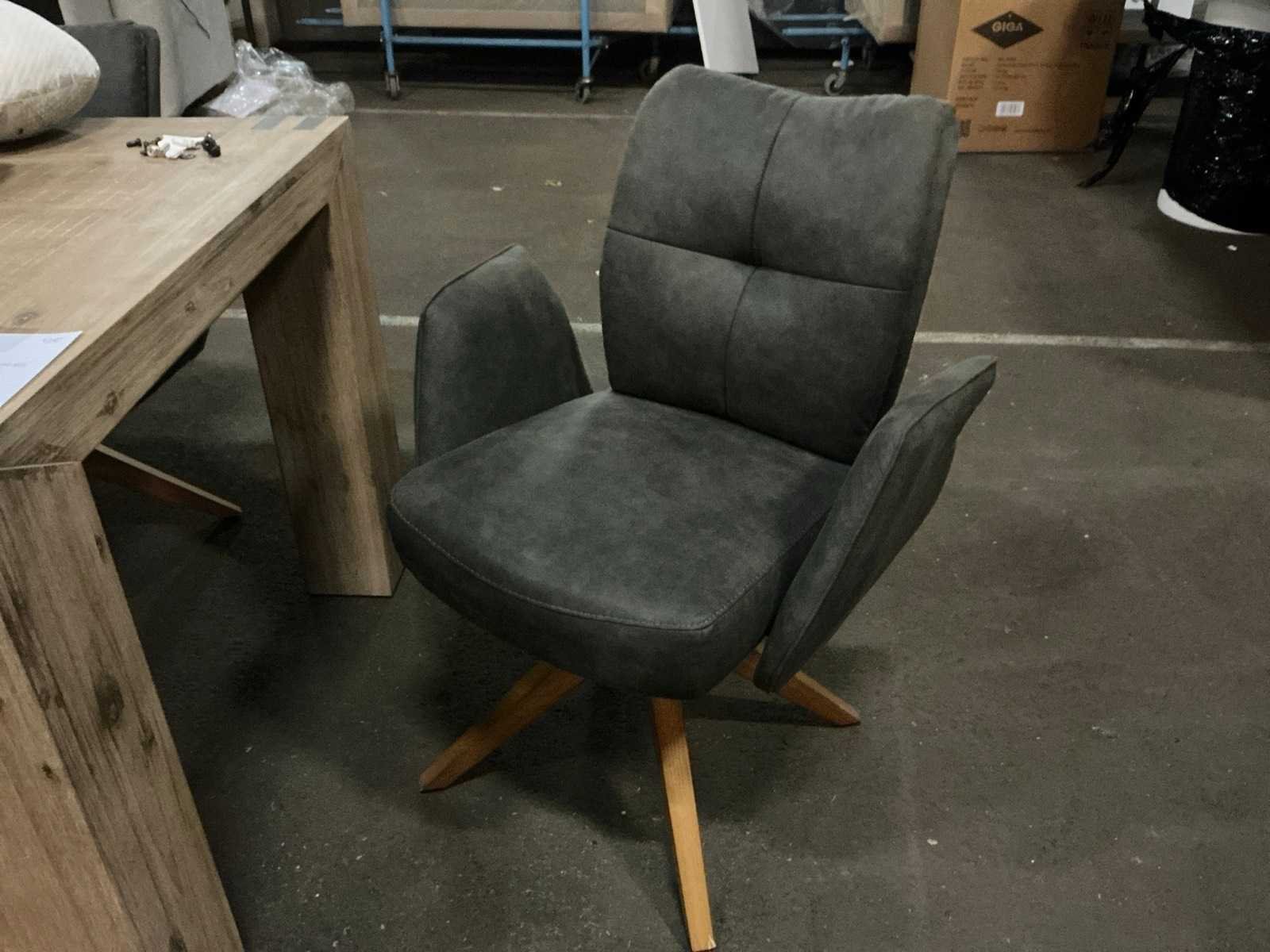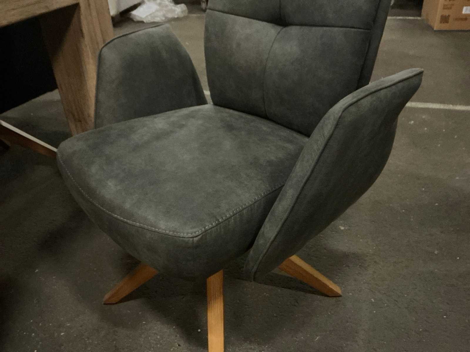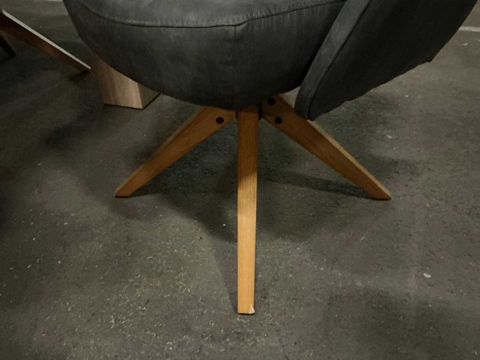Op draaibare voet Model: Manhattan Kleur: Cowboy grey Materiaal: Stoffen bekleding op houten poot