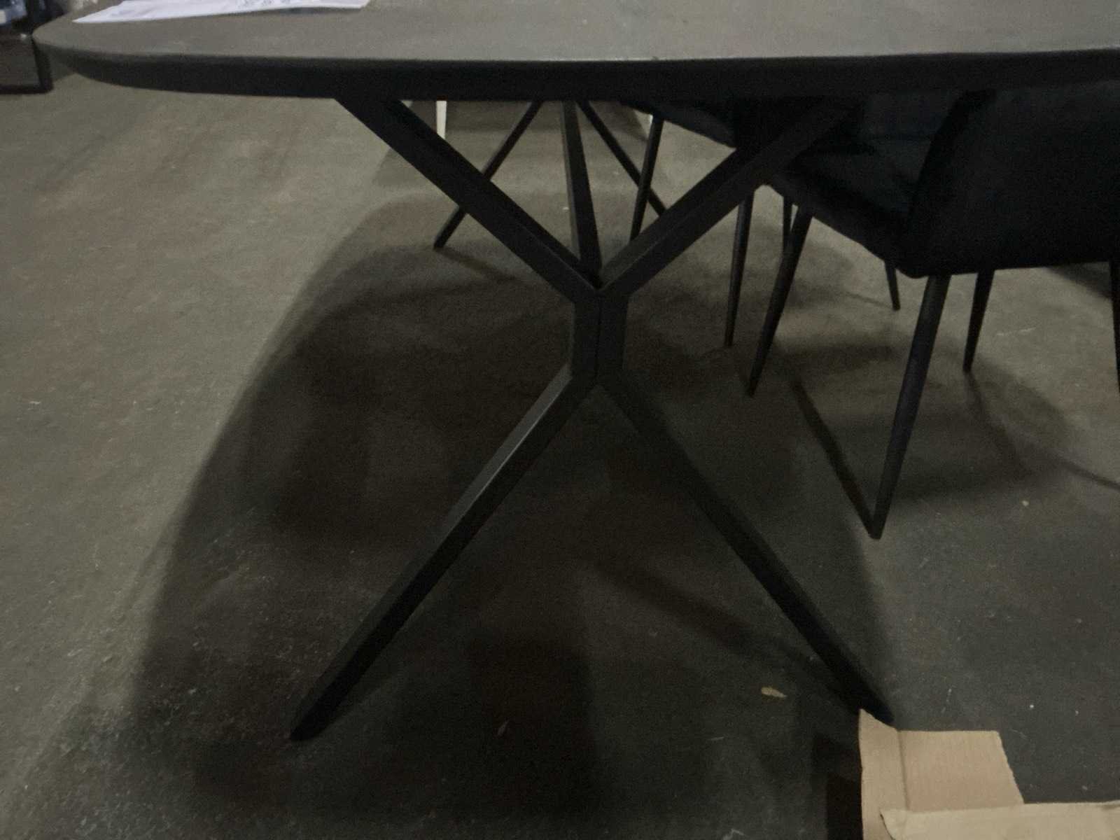 Merk: Gigameubel Model: Famke Vorm: Deens ovaal Zitplaatsen: 6 Kleur: Zwart Lengte: 220cm Breedte: 100cm Hoogte: 77cm Materiaal: Mango hout blad op metaal onderstel