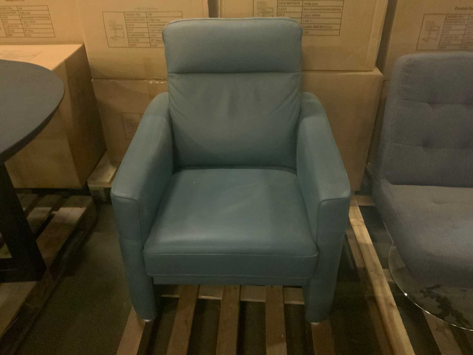 Kleur: Blauw Breedte: 78cm Hoogte: 100cm Zithoogte: 42cm Materiaal: Leder