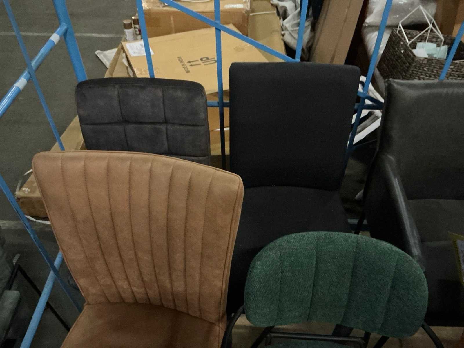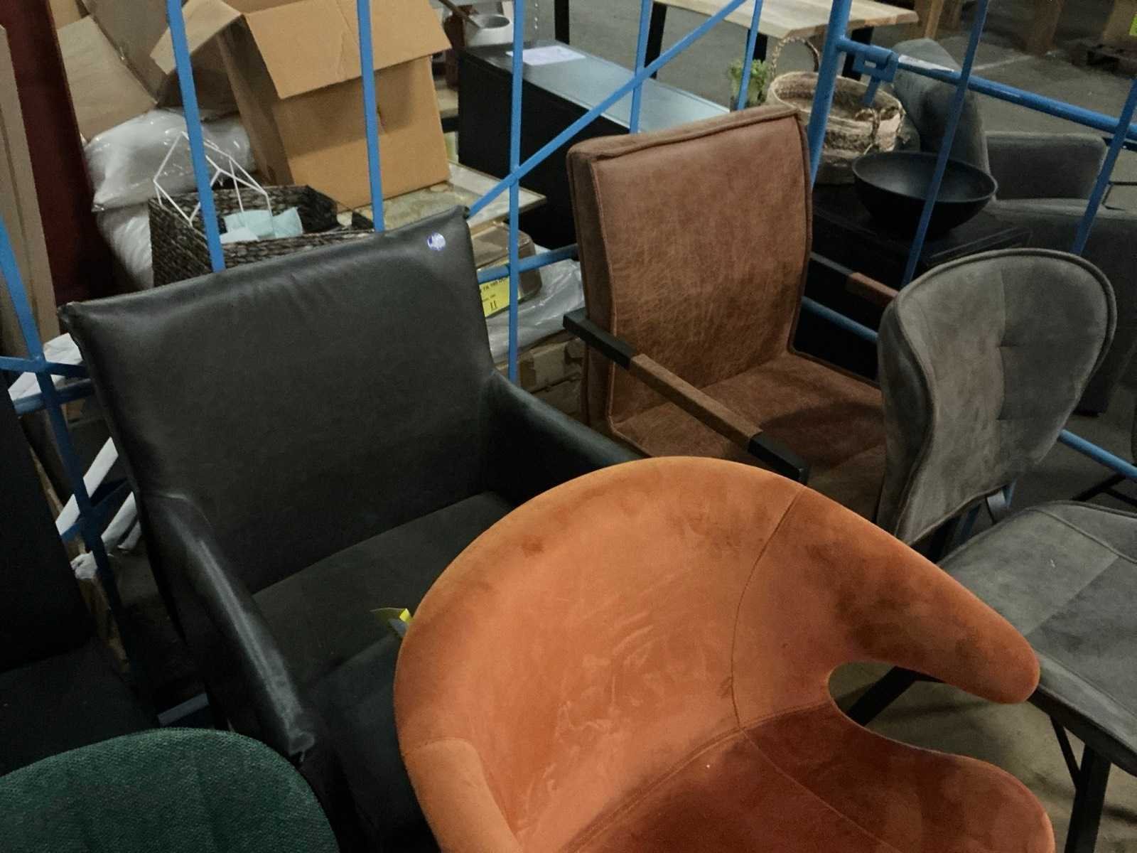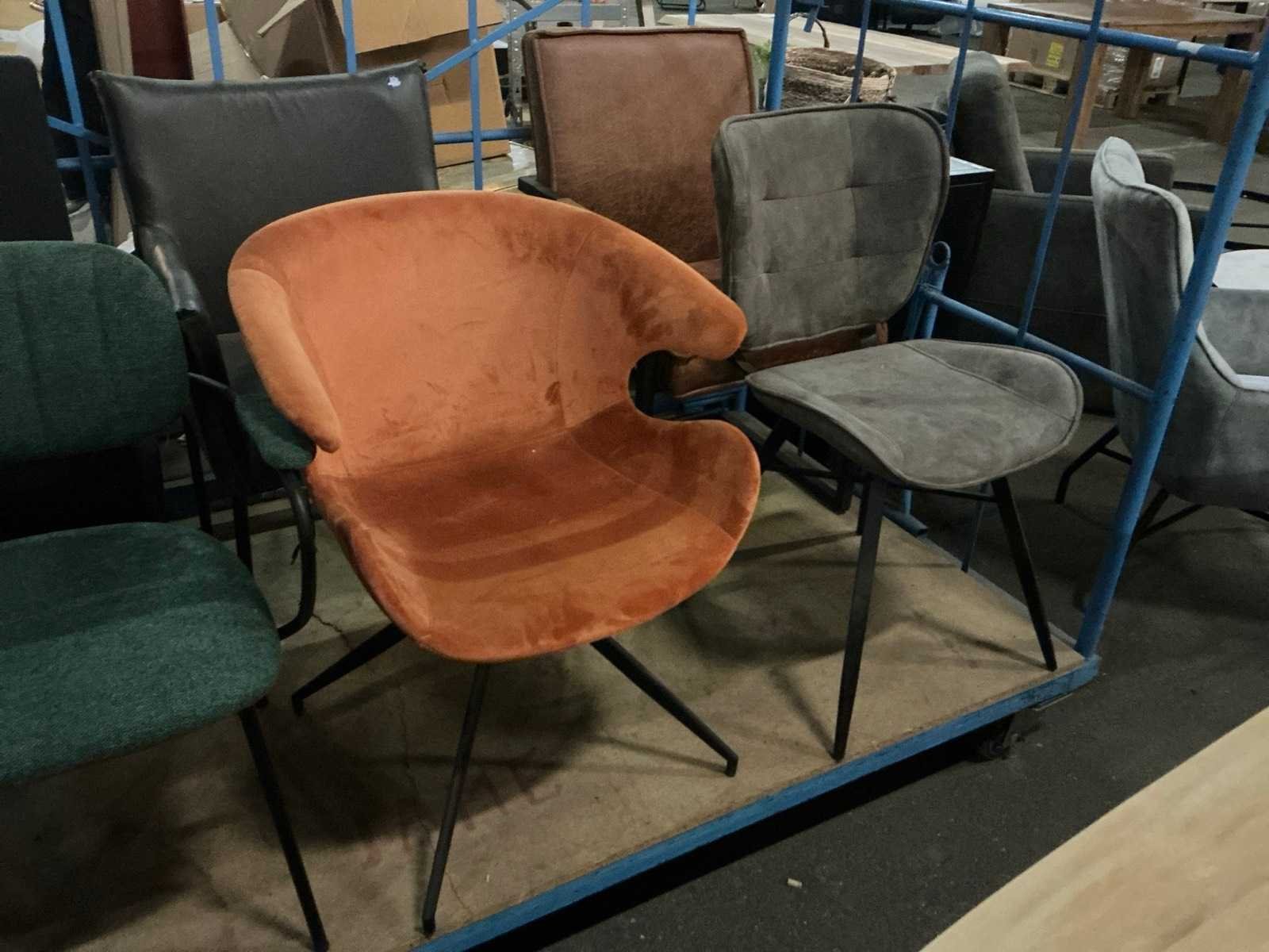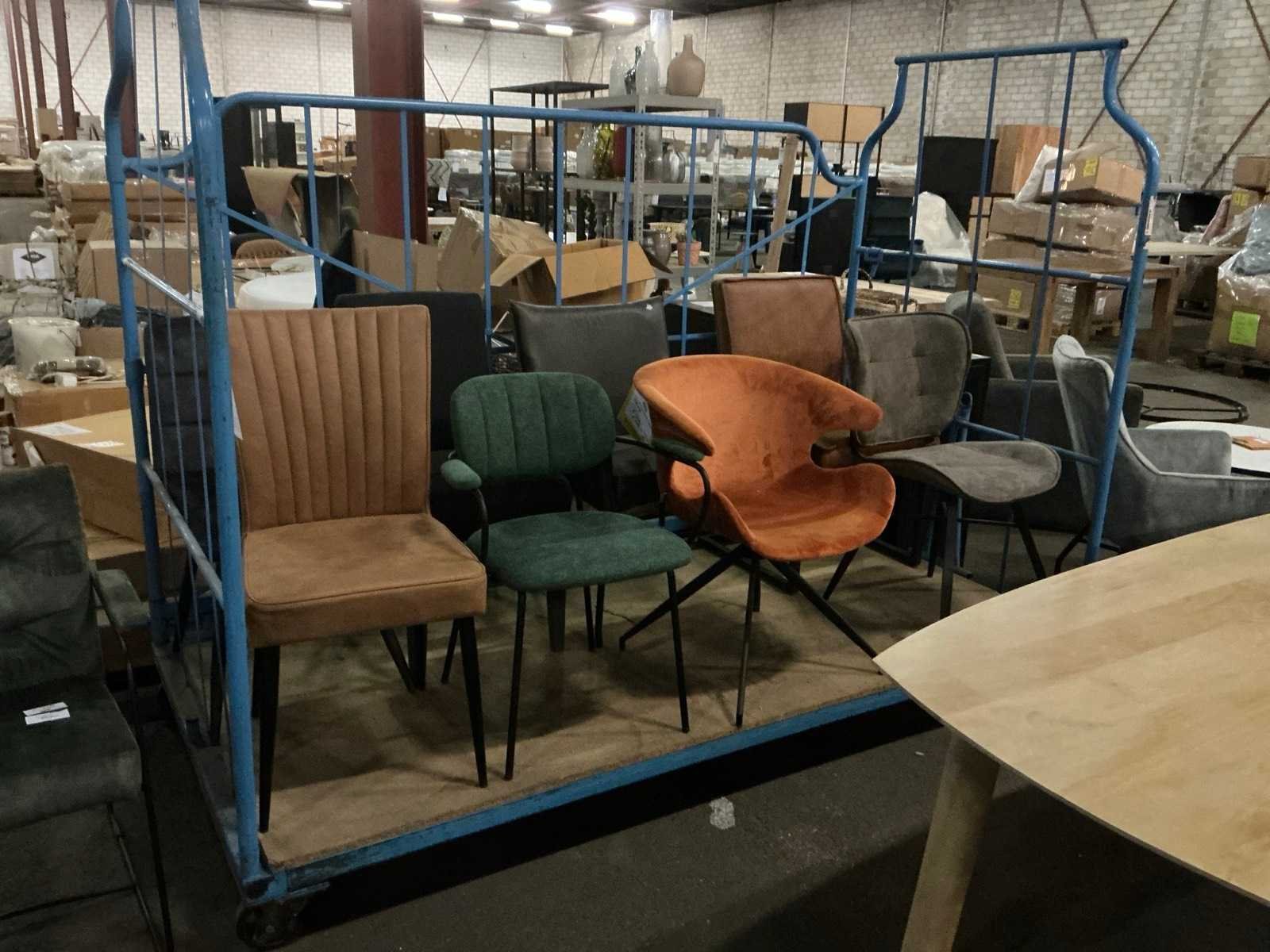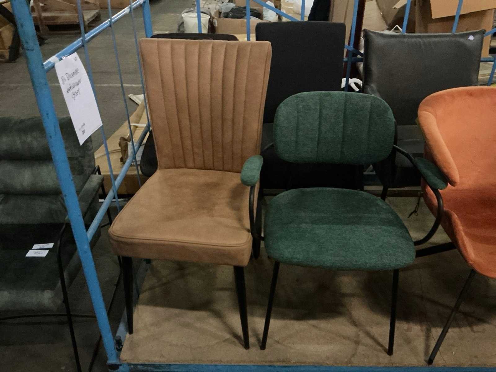 Alles in kar, 8 x diverse eetkamerstoel, stoffen kleuren etc. Model: Diverse