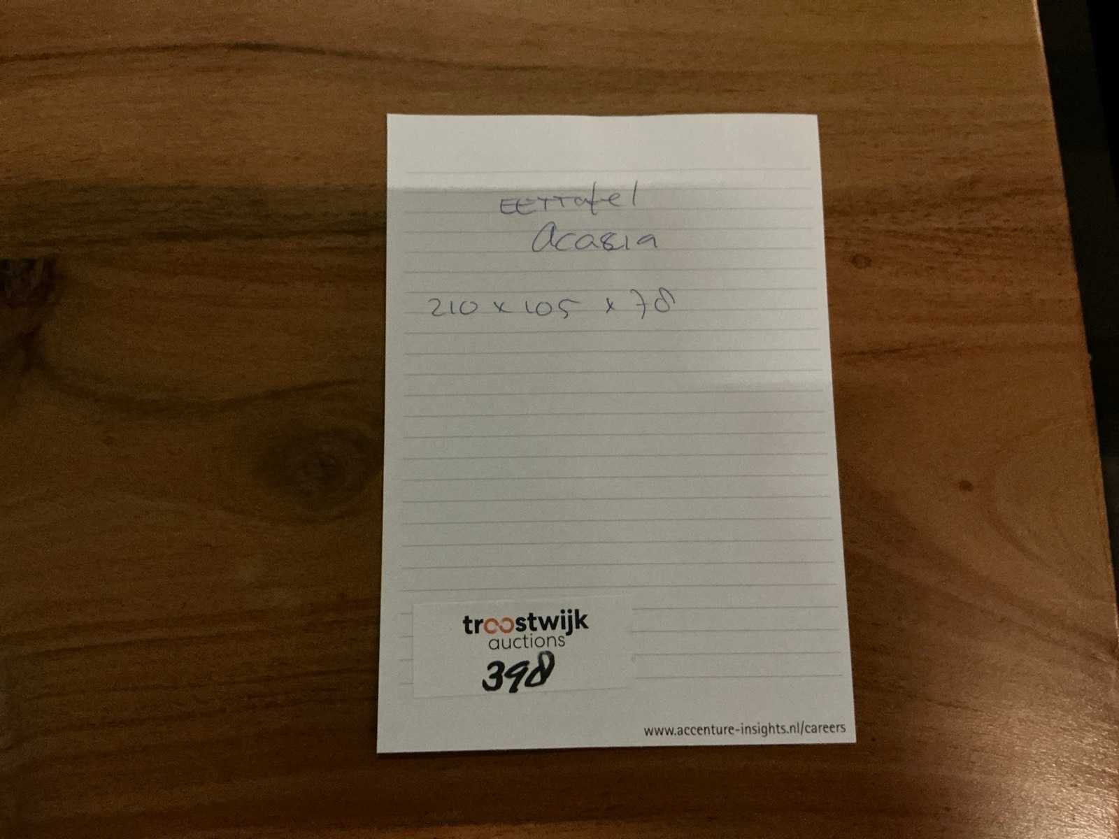 Model: Acacia Boomstam Vorm: Boomstam Kleur: Naturel Lengte: 210cm Breedte: 105cm Hoogte: 78cm Materiaal: Acacia hout blad op metalen poot