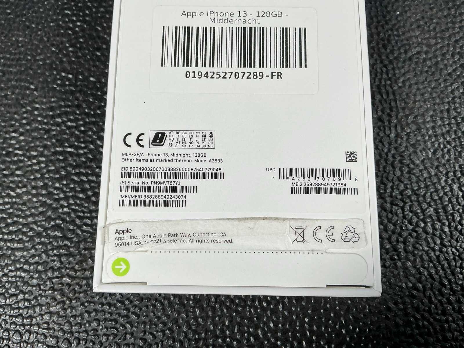 Merk: Apple Model: A2633 Type: iPhone 13 128GB Quick charge functie: true Wifi: true Bluetooth: true Video functie: true Gezichtsherkenning: true Frontcamera: true Camera: true Touchscreen: true Opslagcapaciteit: 128GB Met oplader: true