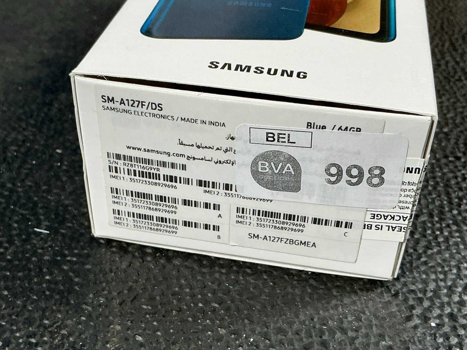 Merk: Samsung Model: SM-A127F/DS Type: Galaxy A12 Vingerafdruksensor: true Quick charge functie: true Wifi: true Bluetooth: true Dual SIM: true Video functie: true Frontcamera: true Camera: true Touchscreen: true Beelddiagonaal: 6.5'' Opslagcapaciteit: 64GB Met oplader: true