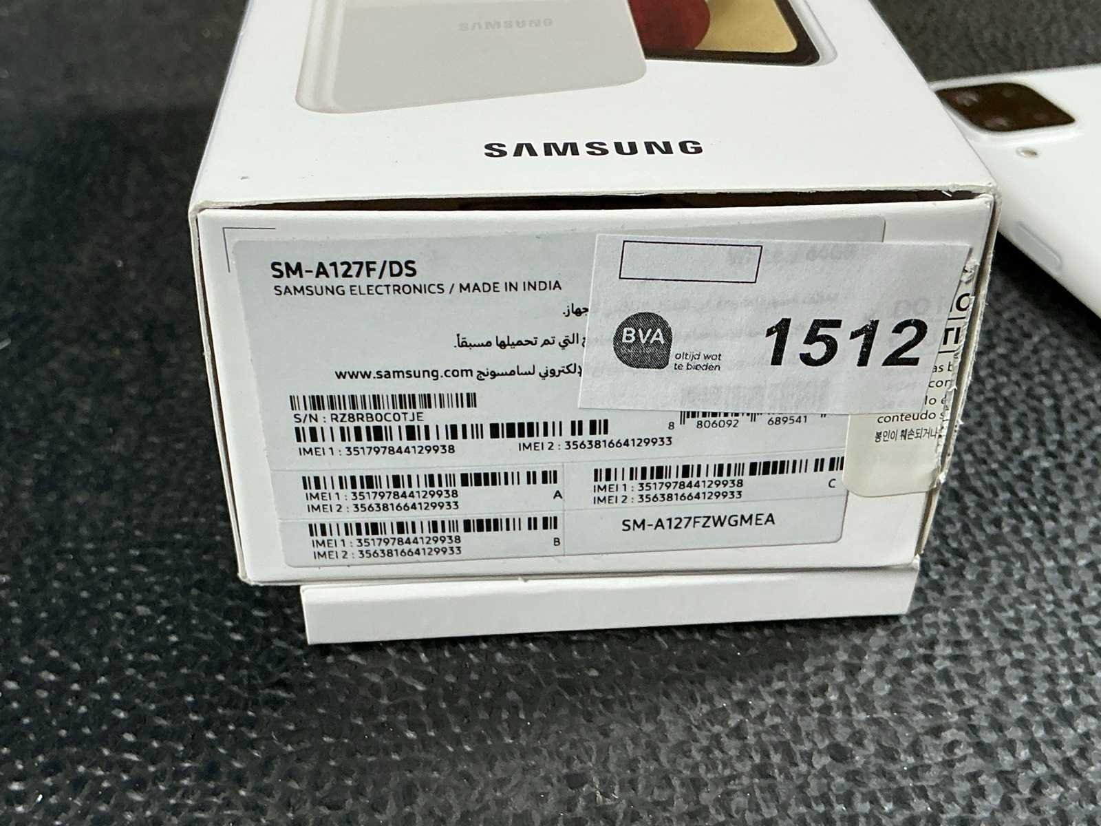Merk: Samsung Model: SM-A127F/DS Type: Galaxy A12 Vingerafdruksensor: true Quick charge functie: true Wifi: true Bluetooth: true Dual SIM: true Video functie: true Frontcamera: true Camera: true Touchscreen: true Beelddiagonaal: 6.5'' Opslagcapaciteit: 64GB Met oplader: true