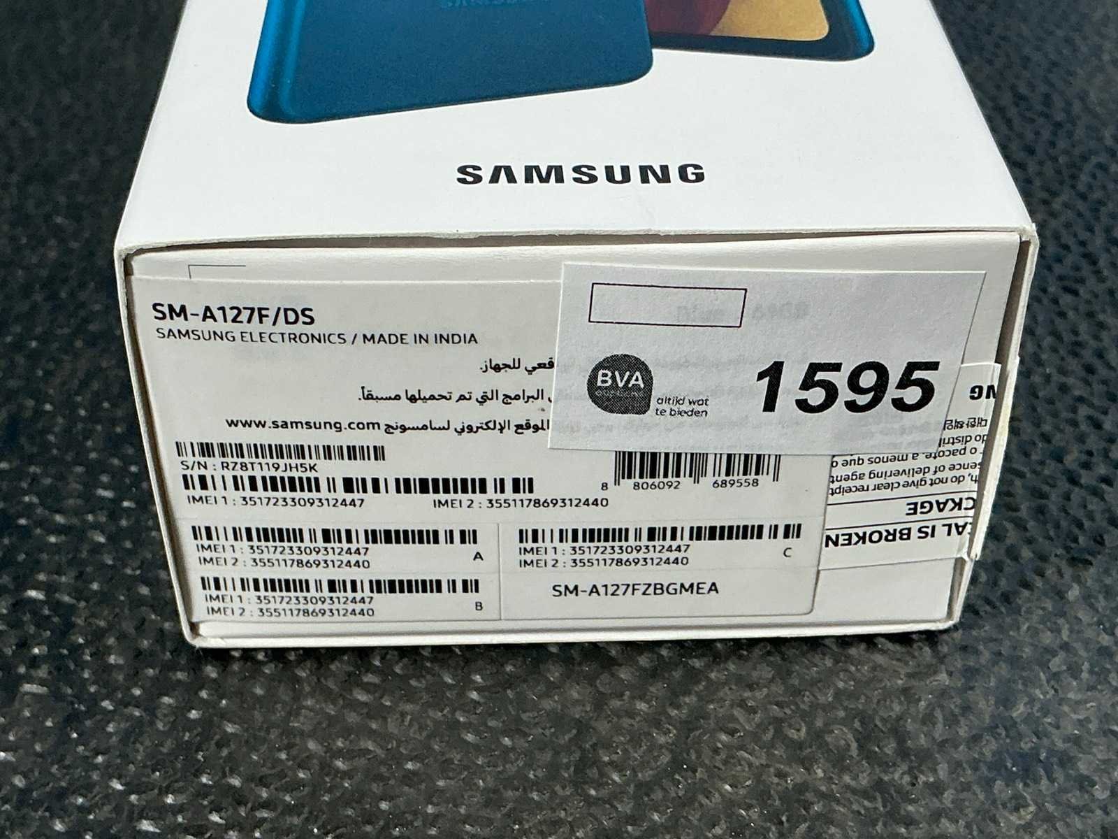 Merk: Samsung Model: SM-A127F/DS Type: Galaxy A12 Vingerafdruksensor: true Quick charge functie: true Wifi: true Bluetooth: true Dual SIM: true Video functie: true Frontcamera: true Camera: true Touchscreen: true Beelddiagonaal: 6.5'' Opslagcapaciteit: 64GB Met oplader: true