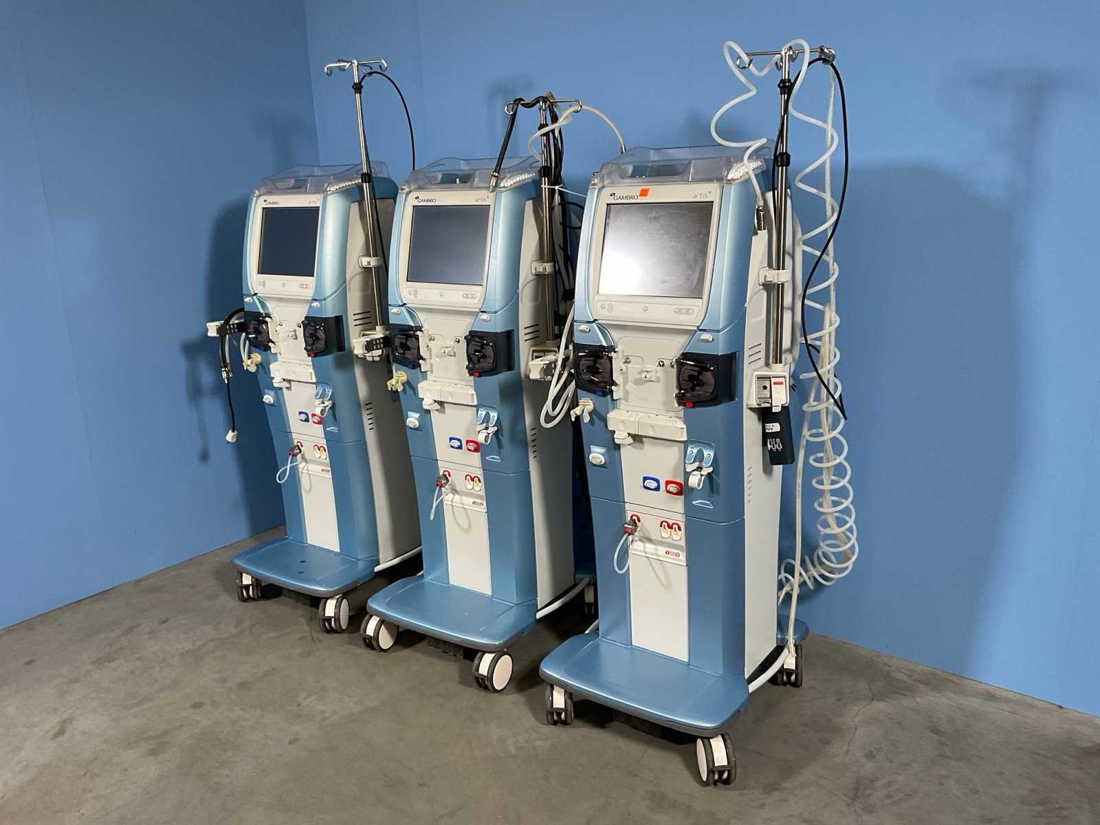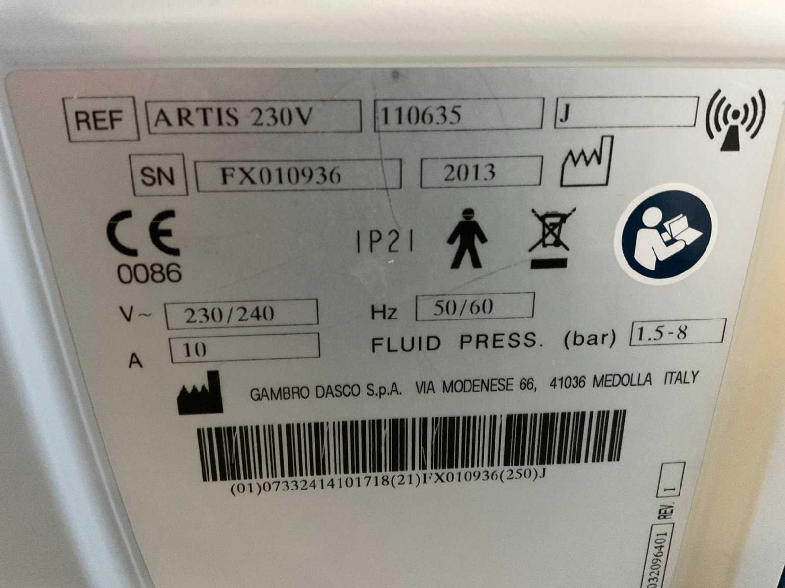 The ARTIS PHYSIO dialysis system is inspired by Baxter’s passionate commitment to hemodialysis. It provides a range of treatment modalities to meet patient needs through innovative technologies that are designed to simplify everyday operations and enhance user experience. Running hours 26561/22229/22675 Merk: Gambro Gewicht: 135kg Type: Artis Bouwjaar: 2013 Serienummer: FX010936/FX012658/FX012913 Aansluiting: 230V Totale afmeting L: 700mm Totale afmeting Breedte: 600mm Totale afmeting Hoogte: 1900mm