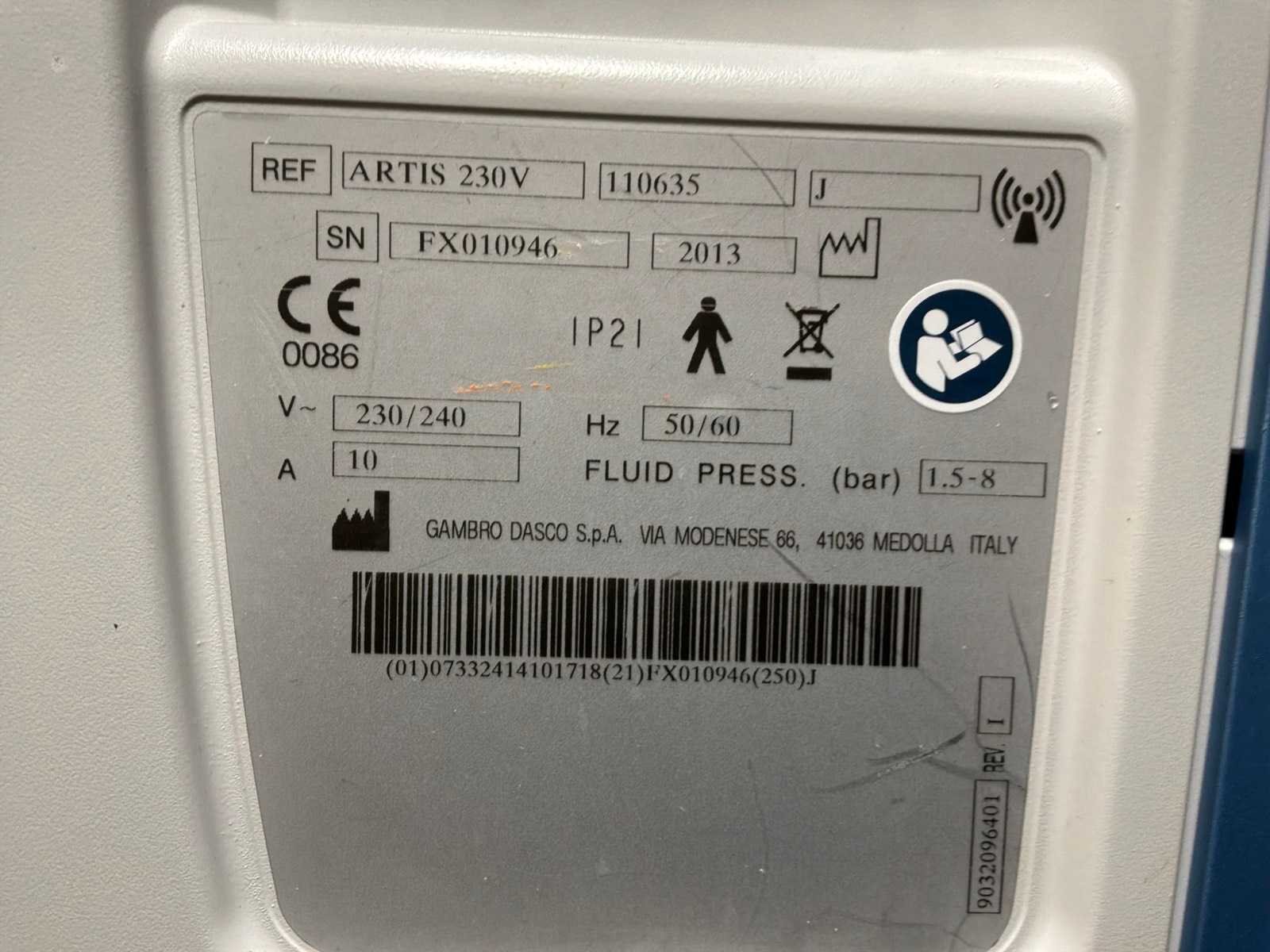 The ARTIS PHYSIO dialysis system is inspired by Baxter’s passionate commitment to hemodialysis. It provides a range of treatment modalities to meet patient needs through innovative technologies that are designed to simplify everyday operations and enhance user experience. Running hours: 28650/27109/25304/23933 Merk: Gambro Gewicht: 135kg Type: Artis Bouwjaar: 2013 Serienummer: FX010946/ FX010665/FX012406/FX011847 Aansluiting: 230V Totale afmeting L: 700mm Totale afmeting Breedte: 600mm Totale afmeting Hoogte: 1900mm