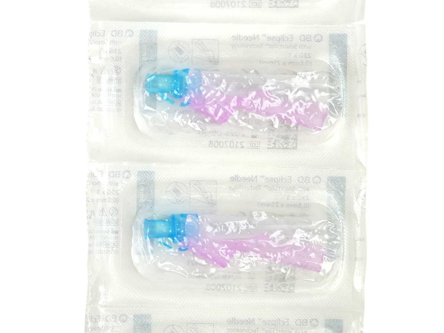 Blauw 0,6 x 25 mm 1 pallet van 34.000 naalden • BPA-vrij • DEHP-vrij • PVC-vrij • Latexvrij • Wegwerpproduct, alleen voor eenmalig gebruik. Merk: Becton Dickinson Type: Eclipse