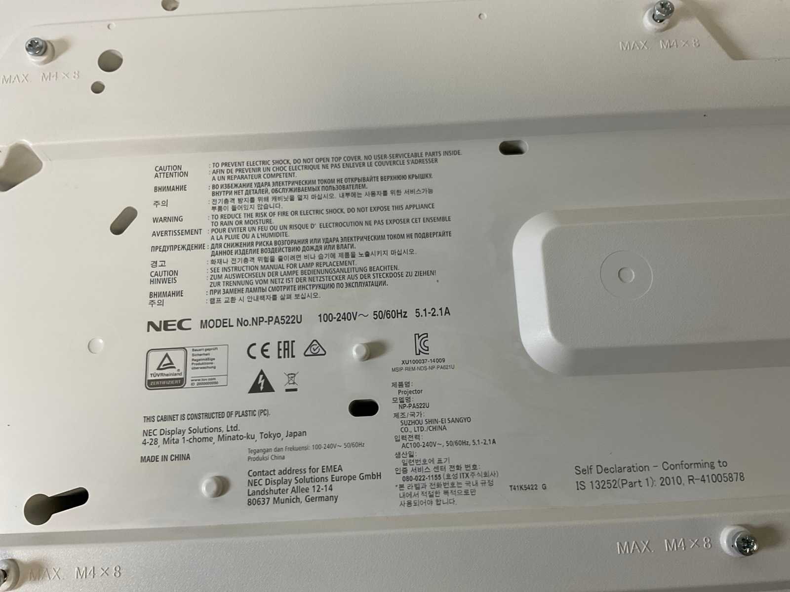 (PA522U) 5200 Lumens WUXGA Projector (1462 Hrs - Lamp Hours); - Tested For Power, - Excl. Power and Connection Cables. Merk: NEC