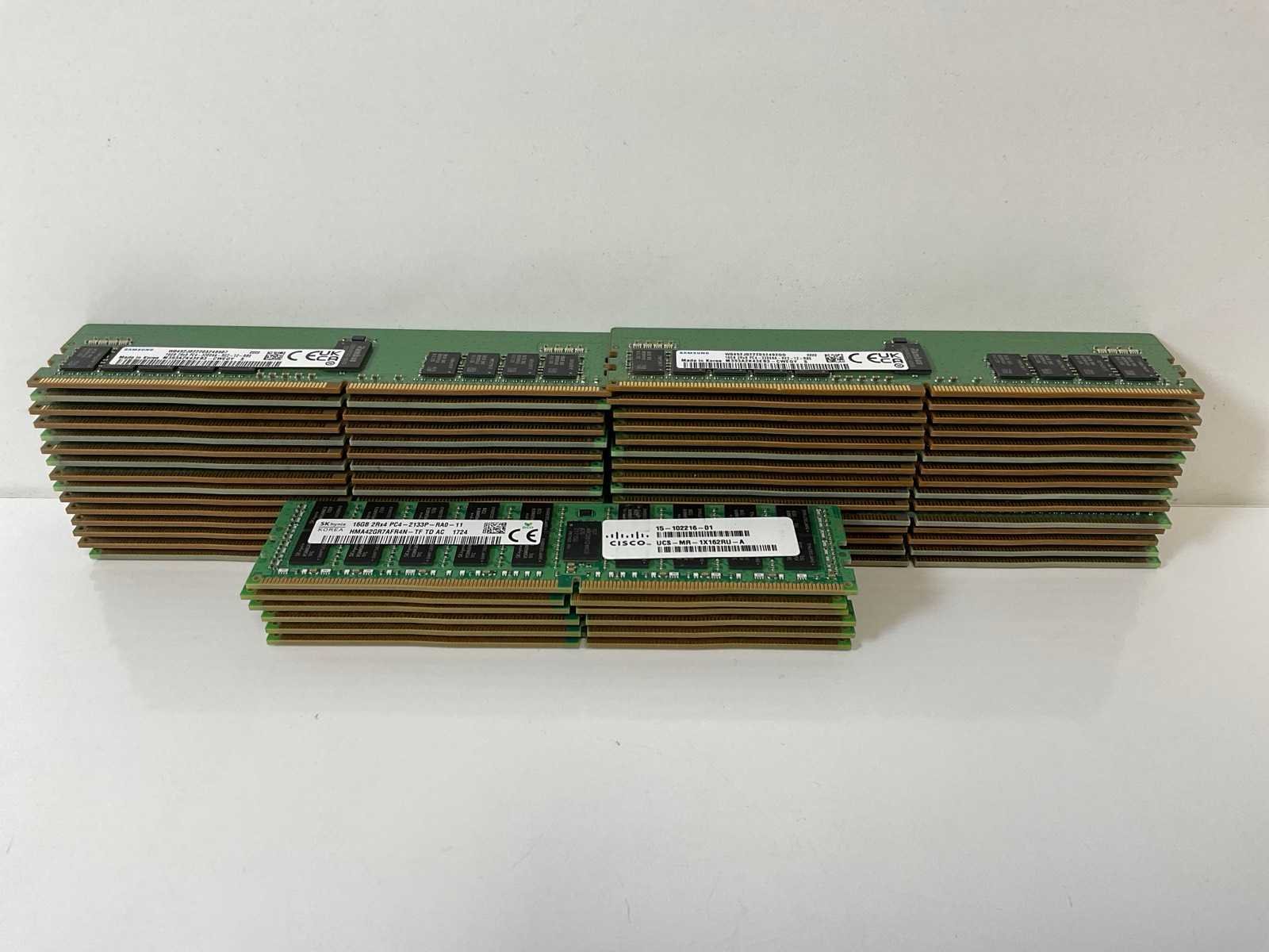 - 30x Samsung (M393A2K43EB3) 16GB 2RX8 PC4 - 3200AA Memory RAMs; - 6x SK Hynix (HMA42GR7AFR4N) 16GB 2Rx4 PC4 - 2133P Memory RAMs, - Not Tested. Merk: Samsung / SK hynix