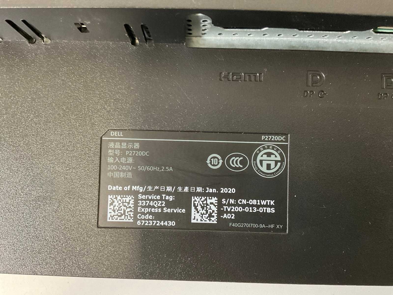 Dell (p2720dc) 27”, 2560x1440 (qhd) ips monitor