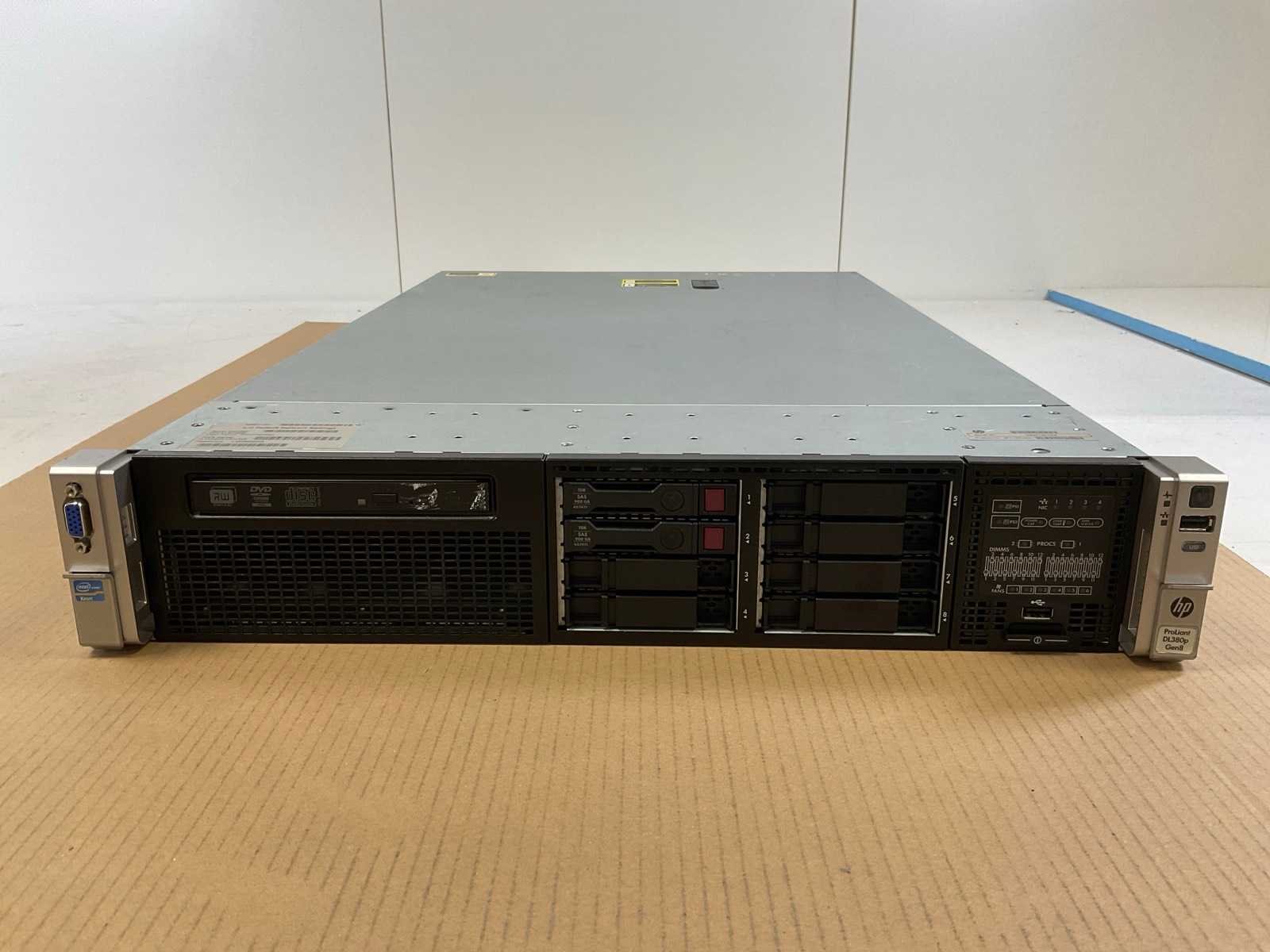 Hp proliant dl380p gen 8, 2x xeon(r) e5-2620, 16x 8 gb ram, 2x 900 gb sas(eg0900fcvbl) rack mount chassis