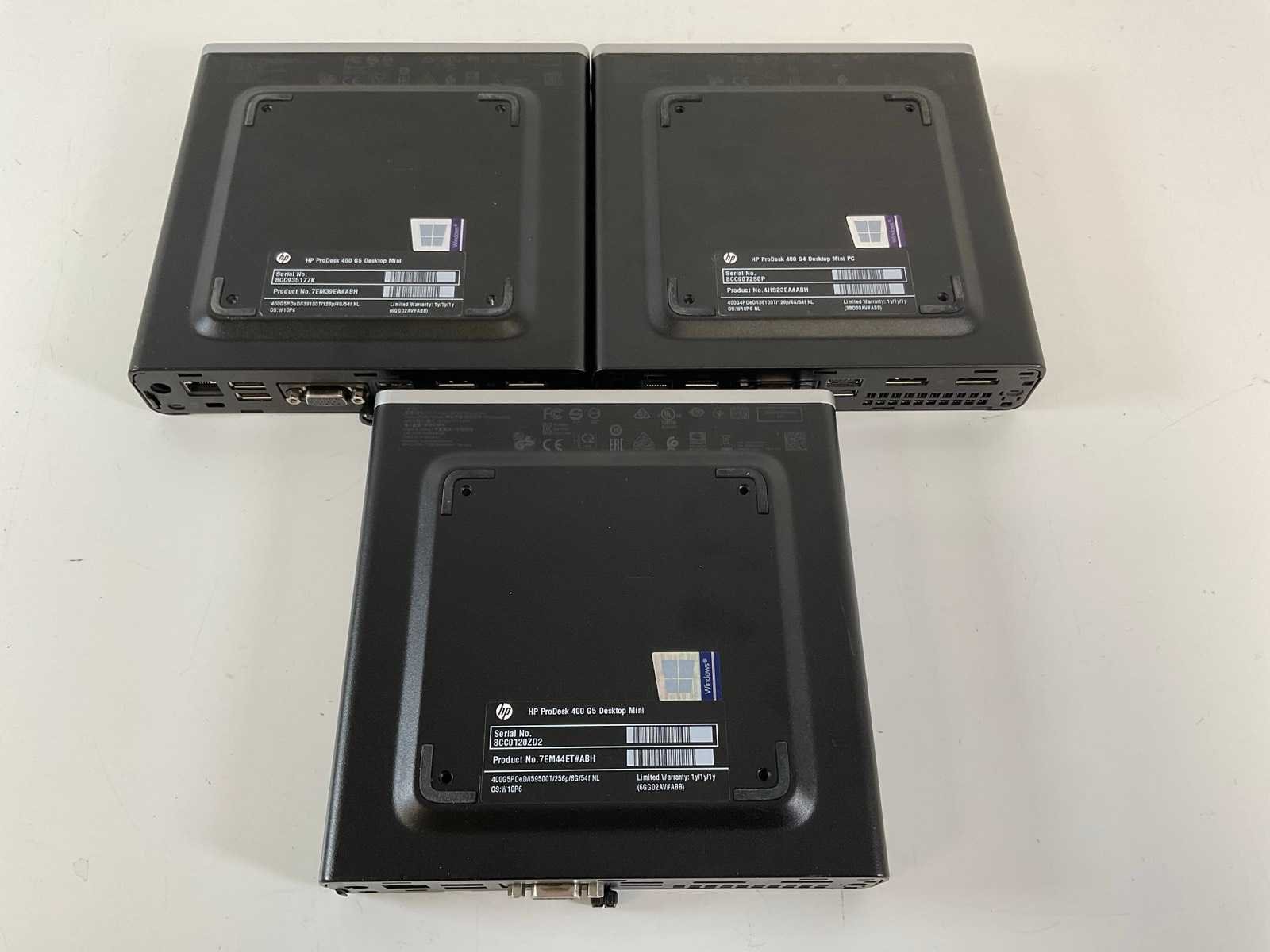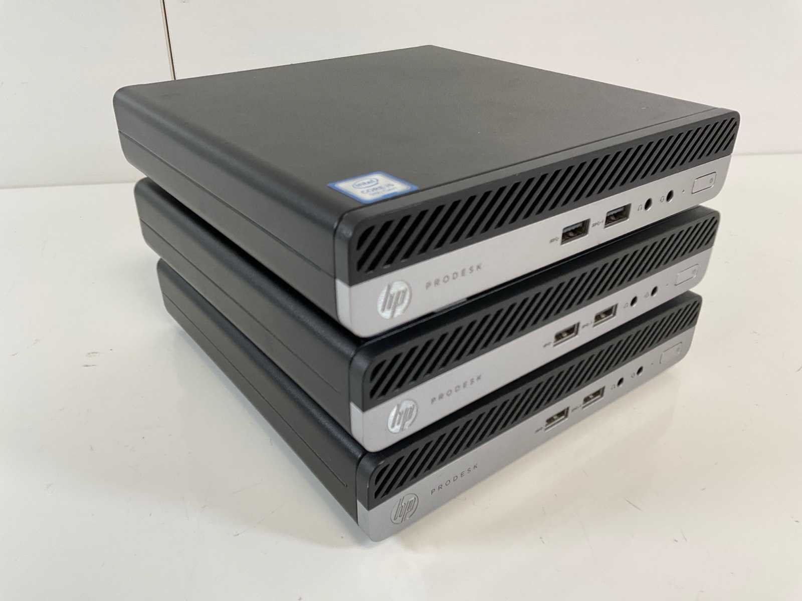 Mix Model Mini Desktops - Check Description; - 1x (ProDesk 400 G5 SFF), Core(TM) i5 9th Gen, 8 GB RAM, 256 GB NVMe Mini Desktop; - 1x (ProDesk 400 G5), Core(TM) i3 9th Gen, 4 GB RAM, 128 GB NVMe Mini Desktop; - 1x (ProDesk 400 G4), Core(TM) i3 8th Gen, 4 GB RAM, 128 GB NVMe Mini Desktop; - Excl. power and connection cables. Merk: HP