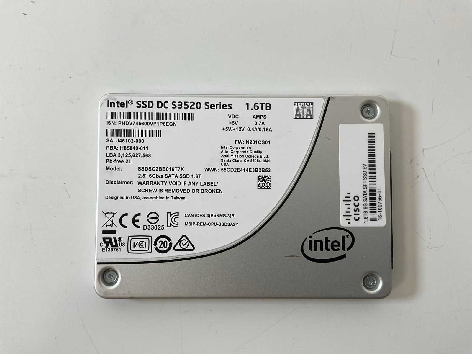 (SSDSC2BB016T7K) DC S3520 1.6 TB SSD HDDs; - Not tested. Merk: Intel