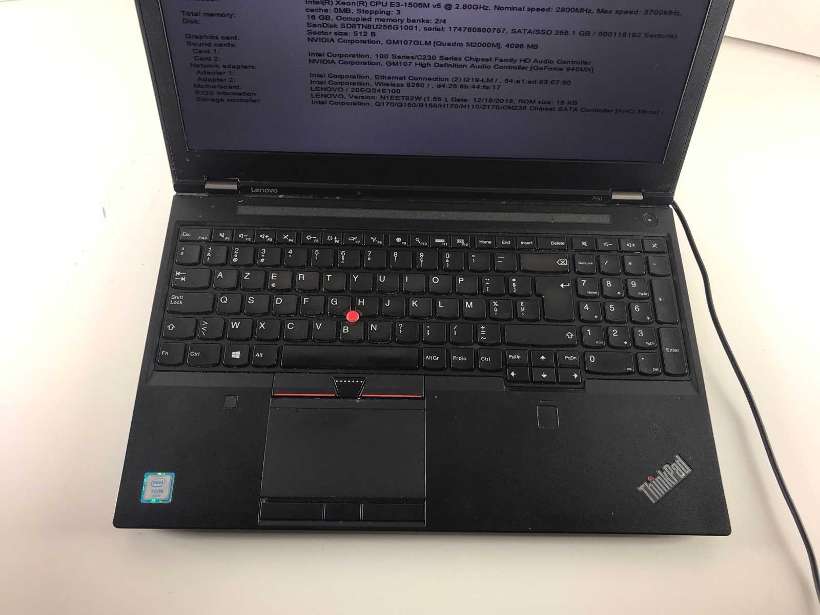 Thinkpad P50 15.6”, Xeon Quad Core, 16 GB RAM, 256 GB SSD Laptop; - Case Damaged, - LCD Stained/Spots, - Excl. Charger. Merk: Lenovo Processor type: Xeon Quad Core Processorsnelheid Ghz: 2,80 RAM Geheugen: 16GB RAM Geheugen Type: DDR4 Totale opslagcapaciteit: 256GB Type datadrager: SATA/SSD Type videokaart: Nvidea Corp. GM107GLM Zonder adapter: true Beeldscherm type: IPS Resolutie: 1920x1080 Beelddiagonaal: 15.6'' Wifi: true Bluetooth: true USB-Type: Type A USB poorten: 4 Webcam: true HDMI: 1