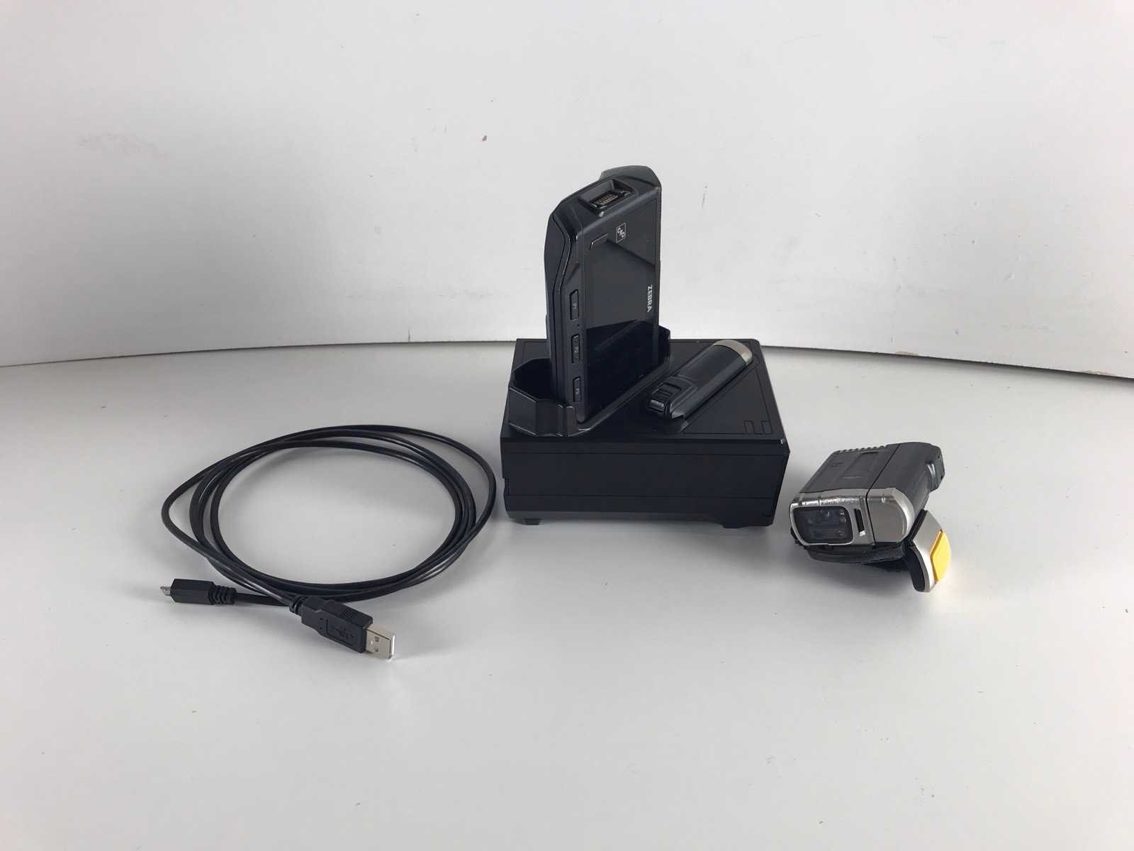 Mix Model Wearable Barcode Scanning System - Check Description; - 1x (WT6000) Wearable Computer (Hand-Free Terminal) Without Wrist Strap; - 1x (RS60B0-SRSTWR) Bluetooth Ring-Scanner; - 1x (CRD-NGWT-1S1BU-01) Dock/Loading Station; - Tested For Power. Merk: Zebra Technologies