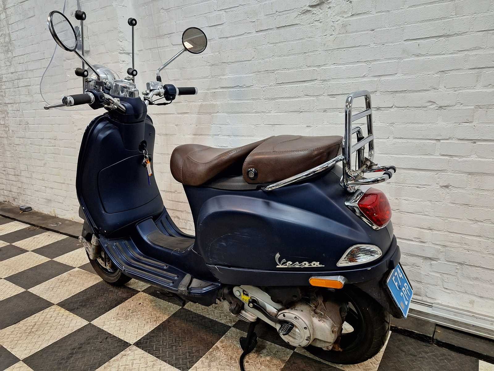 2 sleutels voor scooter en 1 alarmkastje aanwezig. Accessoires: hoog windscherm en achterklapdrager. Merk: Piaggio Vespa Model: 25 km snorscooter 4takt Type: LXV Snelheid: 25km/h Kenteken: F742PP Datum eerste toelating: 18-06-2013 Bouwjaar: 2013 Kleur: mat blauw Afgelezen kilometerstand: 8984km
