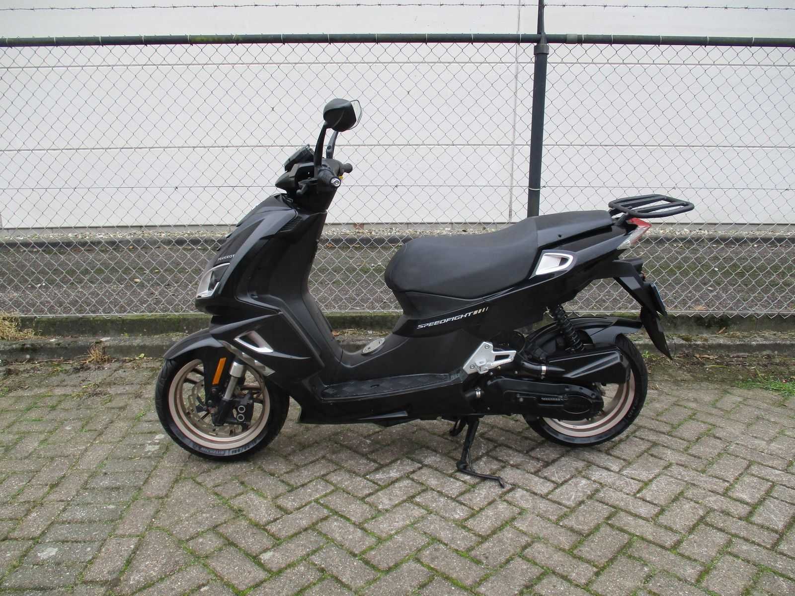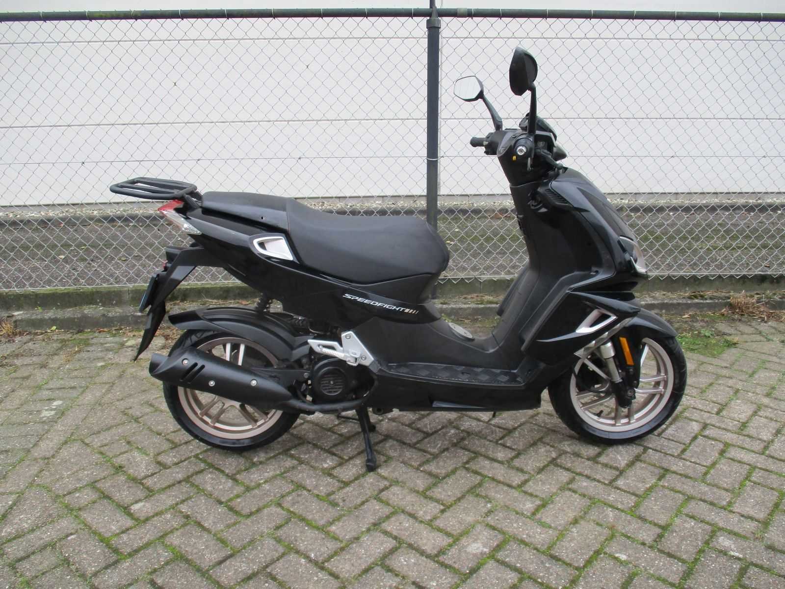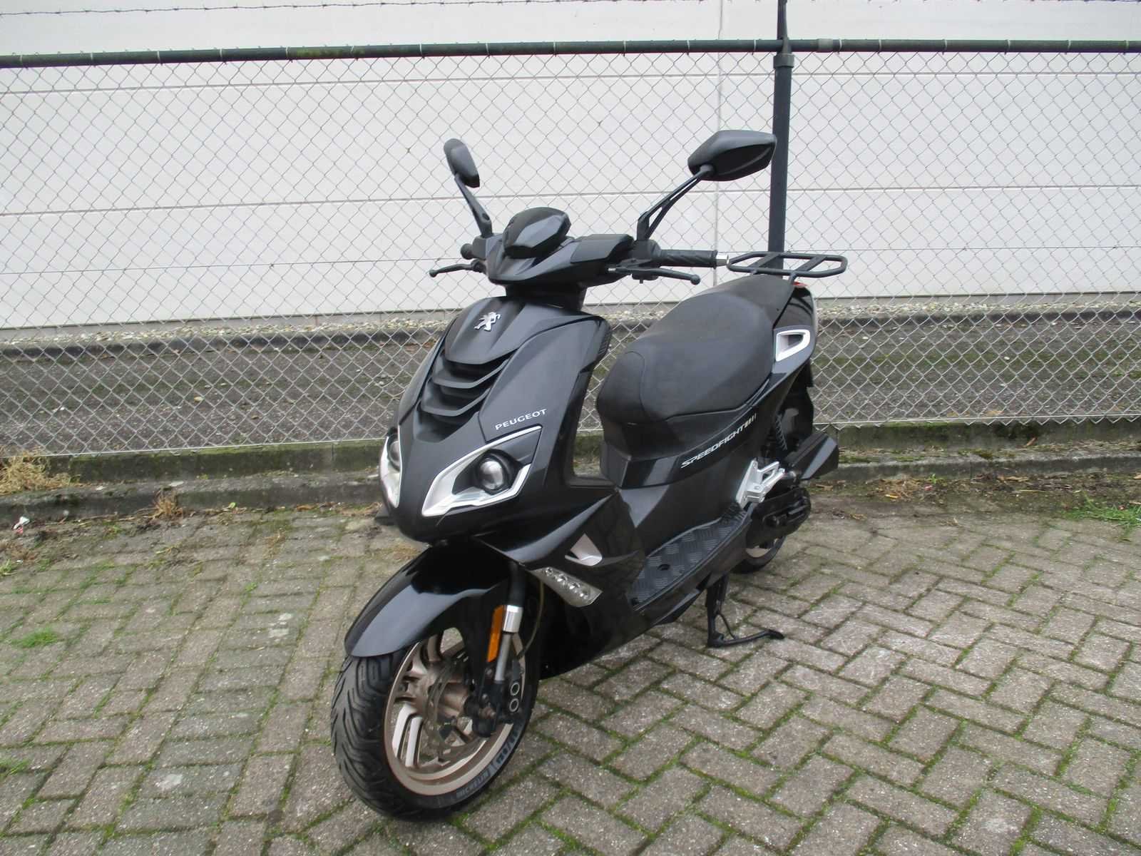 Snorscooter met 1 sleutel inclusief achter drager, motor loopt m.b.v. kickstart (accu zwak). Merk: Peugeot Model: Snorscooter Type: Speedfight 4 2T Dark Handelsbenaming: SPEEDFIGHT Snelheid: 25km/h Kenteken: DKZ-66-V Datum eerste toelating: 2017-10-05 Bouwjaar: 05-10-2017 Transmissie: automaat Brandstof: benzine Kleur: niet van toepassing Afgelezen kilometerstand: 27820km