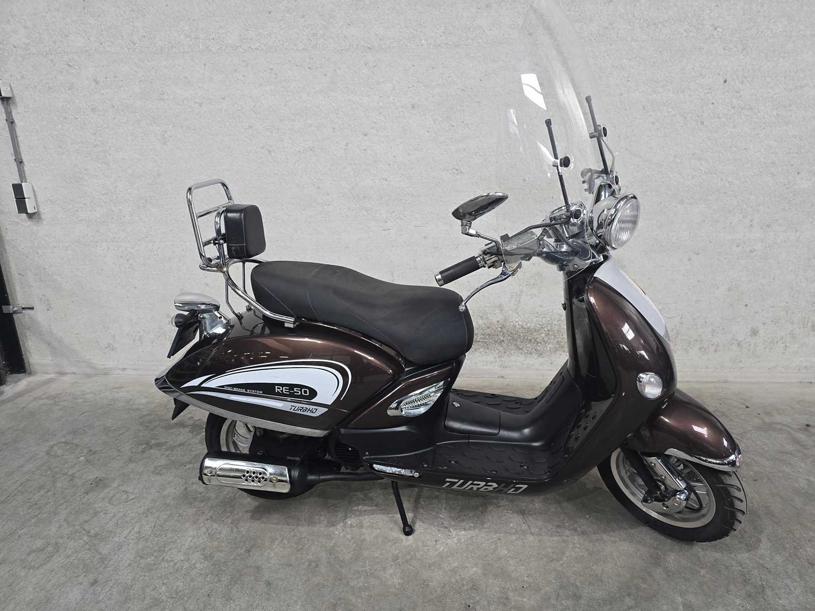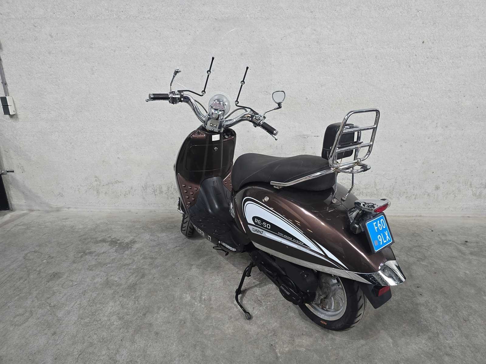 1 sleutel - motor loopt - technische / onderhoud staat onbekend - Merk: Turbho Model: Snorscooter Type: RE-50 Handelsbenaming: RE-50 Kenteken: F609LX Datum eerste toelating: 2014-07-19 Bouwjaar: 2014 Transmissie: automaat Brandstof: benzine Kleur: bruin