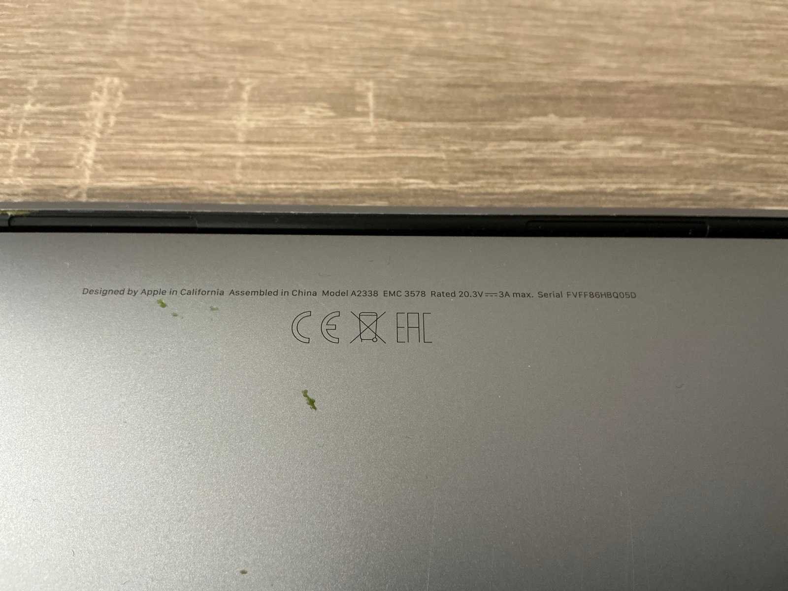 Merk: Apple Inc. Type: MacBookPro17,1 Serienummer: FVFF86HBQ05D Processor type: Apple M1 RAM Geheugen Type: 8 GB Totale opslagcapaciteit: 251GB Besturingssysteem: Geen besturingssysteem geinstalleerd. Zonder adapter: true Wifi: true Bluetooth: true Webcam: true