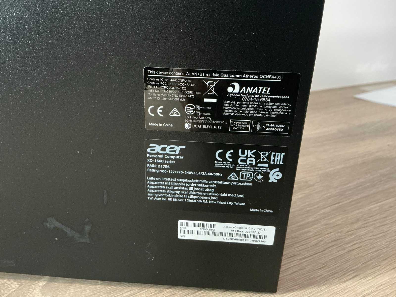 Merk: Acer Type: Aspire XC-1660 Processor type: 11th Gen Intel(R) Core(TM) i5-11400 @ 2.60GHz,x86_64 @ 4.4GHz, logical CPUs: 12, Speed: 4400MHz Type datadrager: HDD/SATA 1TB Serienummer: DTBGWEH006121010B79600 RAM Geheugen Type: 8GB Zonder voedingskabel: true