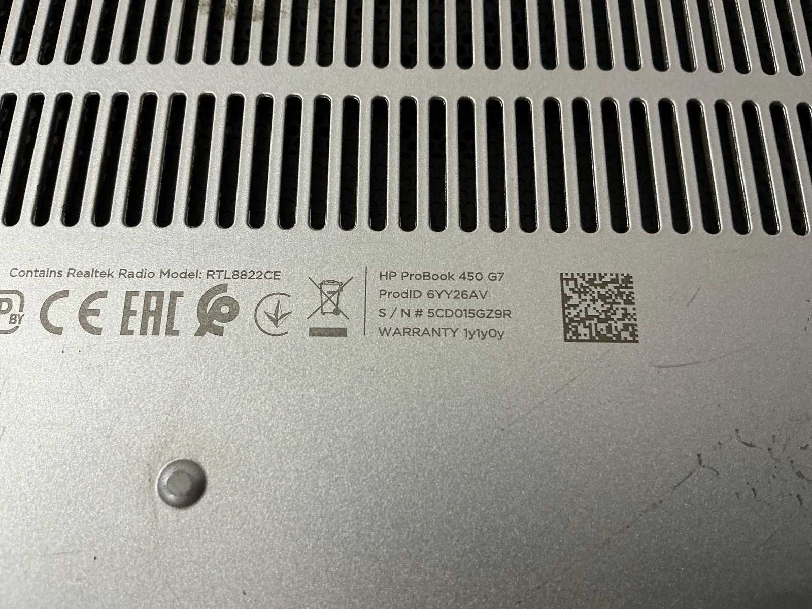 Behuizing licht beschadigd Merk: HP Type: Probook 450 G7 Processor type: Intel(R) Core(TM) i5-10210U CPU RAM Geheugen: 8GB Type datadrager: 1tb hdd + 256 nvme Besturingssysteem: Geen Zonder adapter: true Beelddiagonaal: 15'' Wifi: true Bluetooth: true Webcam: true