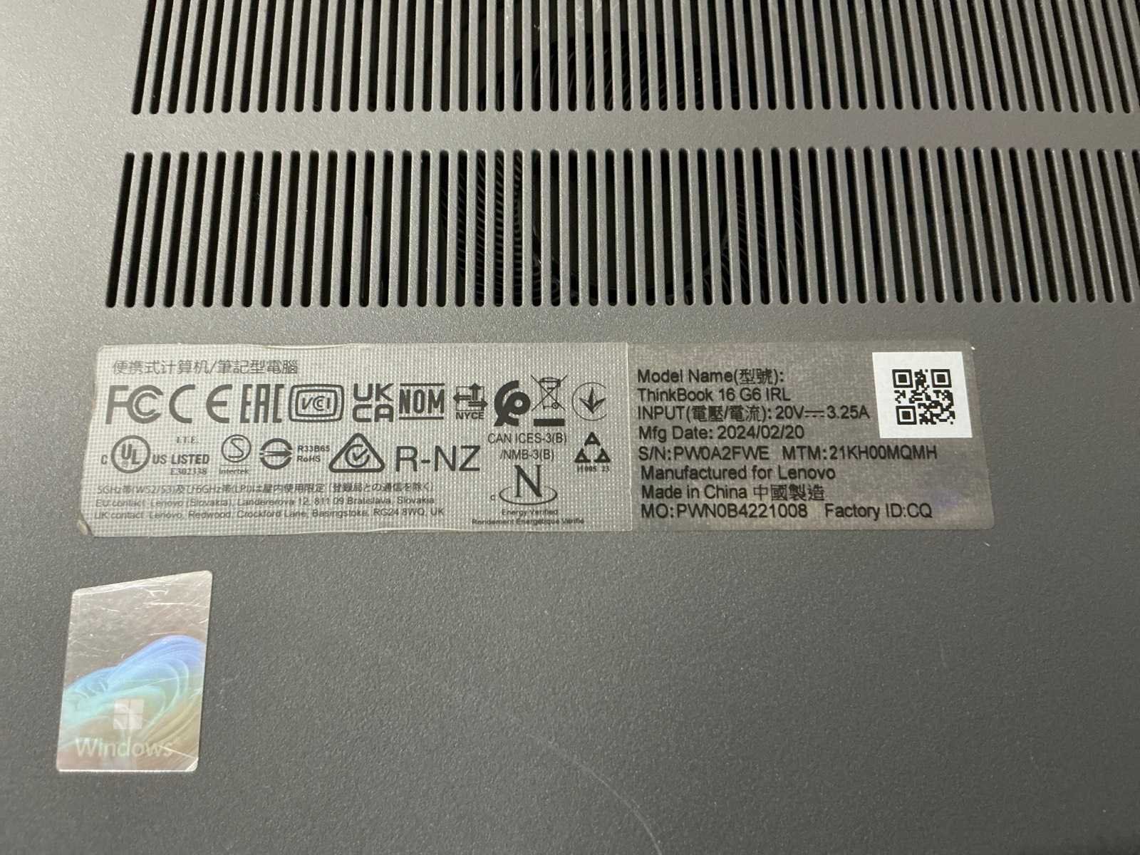 Merk: Lenovo Type: Thinkbook 16 G6 IRL Serienummer: PW0A2FWE Processor type: Intel Core i5-1335u RAM Geheugen: 16GB Besturingssysteem: Geen Met adapter: true Beelddiagonaal: 16'' Wifi: true Bluetooth: true Webcam: true