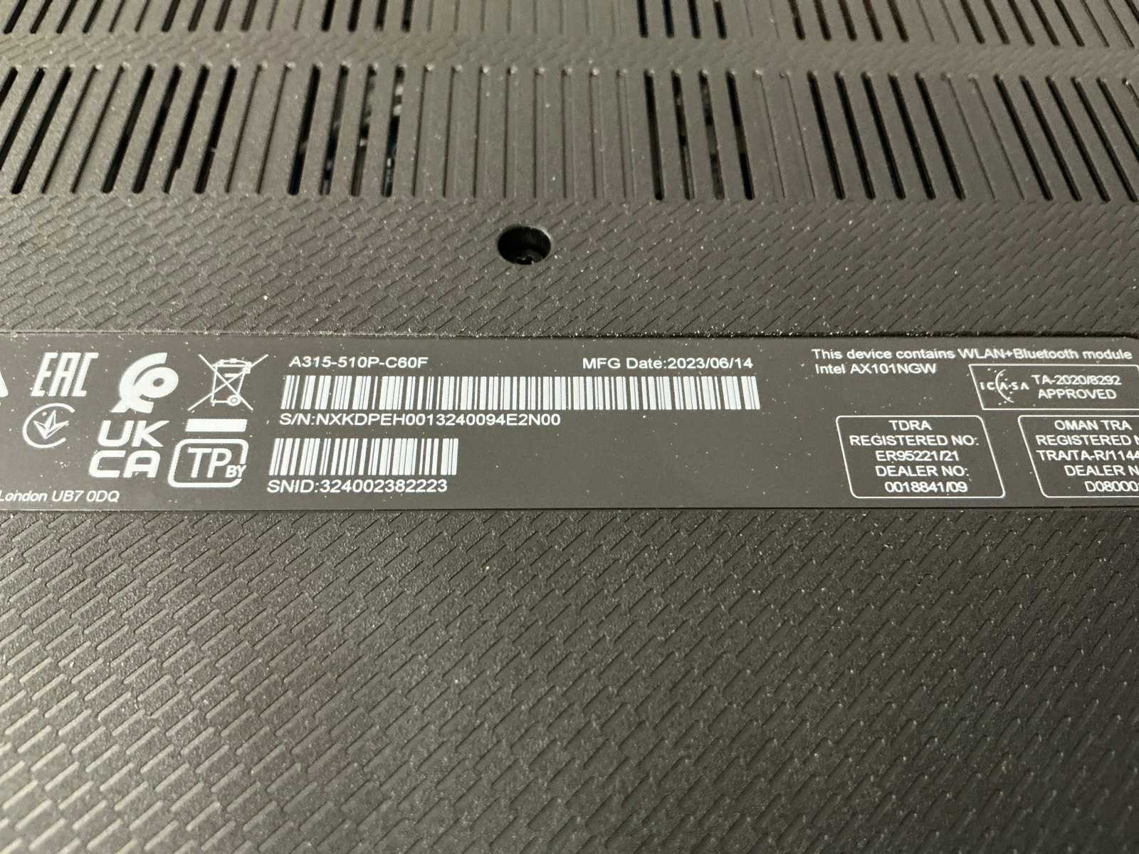 Merk: Acer Type: Aspire A315-510P-C60F Jaargang: 2023 Processor type: Intel(R) N100 RAM Geheugen: 4GB Besturingssysteem: Geen Zonder adapter: true Beelddiagonaal: 15'' Wifi: true Bluetooth: true Webcam: true