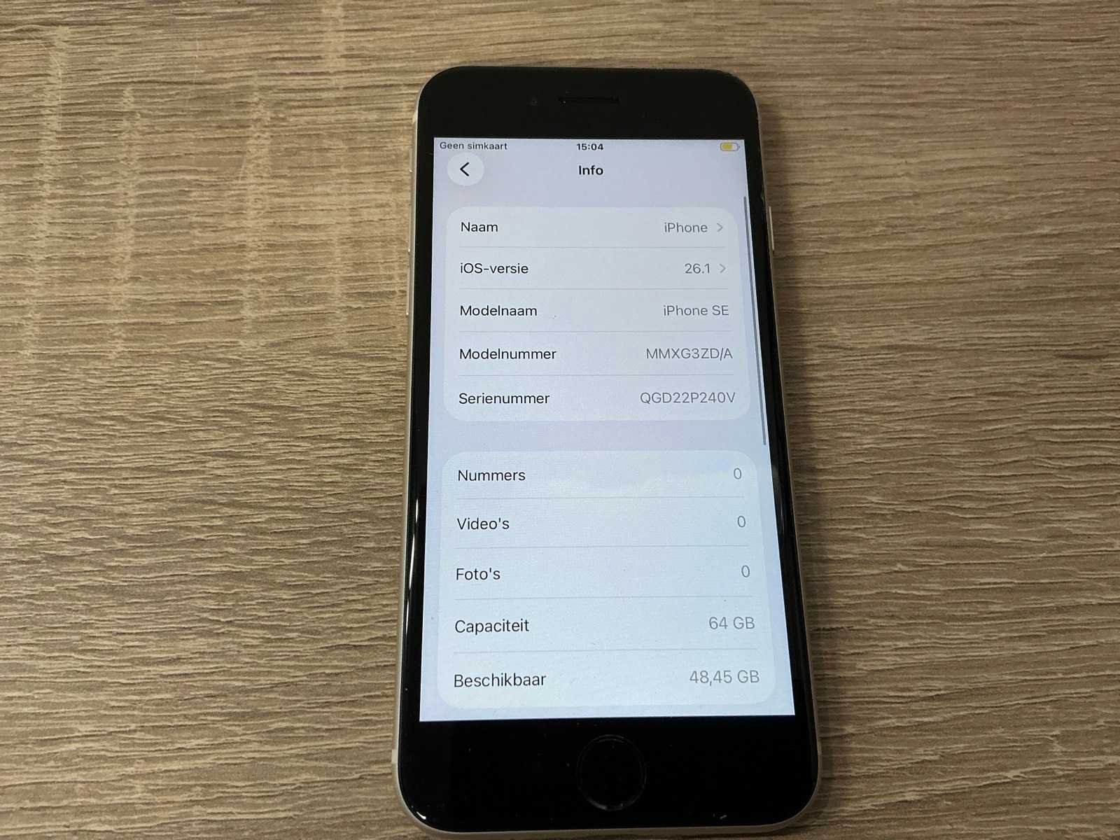 Merk: Apple Model: Iphone SE (3rd gen, 64gb) Draadloos opladen: true Wifi: true Bluetooth: true Video functie: true Geïntegreerde flits: true Camera: true Touchscreen: true Besturingssysteem: Ios Zonder oplader: true