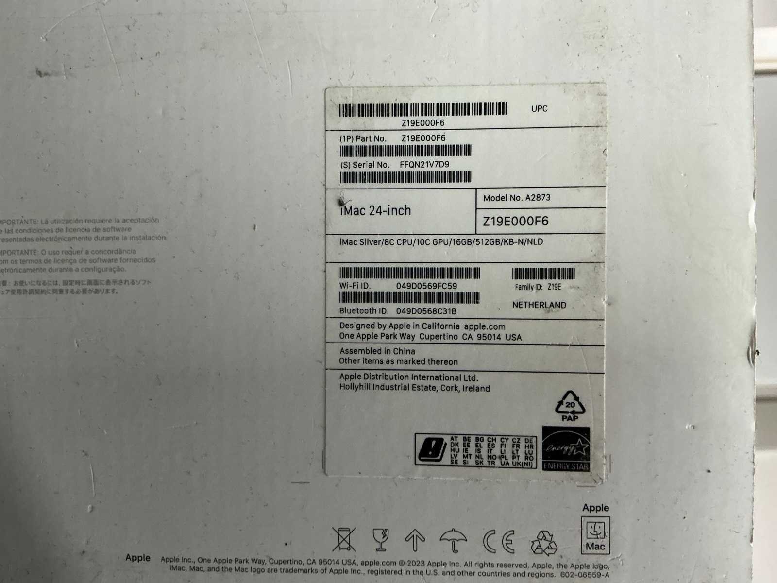 Met adapter, doos en keyboard. Geen muis Merk: Apple Type: Imac 24” (M3, 16GB) Processor type: Apple M3 (8core) Besturingssysteem: Geen Type datadrager: 500gb Apple SSD Serienummer: FFQN21V7D9 RAM Geheugen: 16GB Opslagcapaciteit: 512GB Bluetooth: true Wifi: true Met voedingskabel: true Met adapter: true