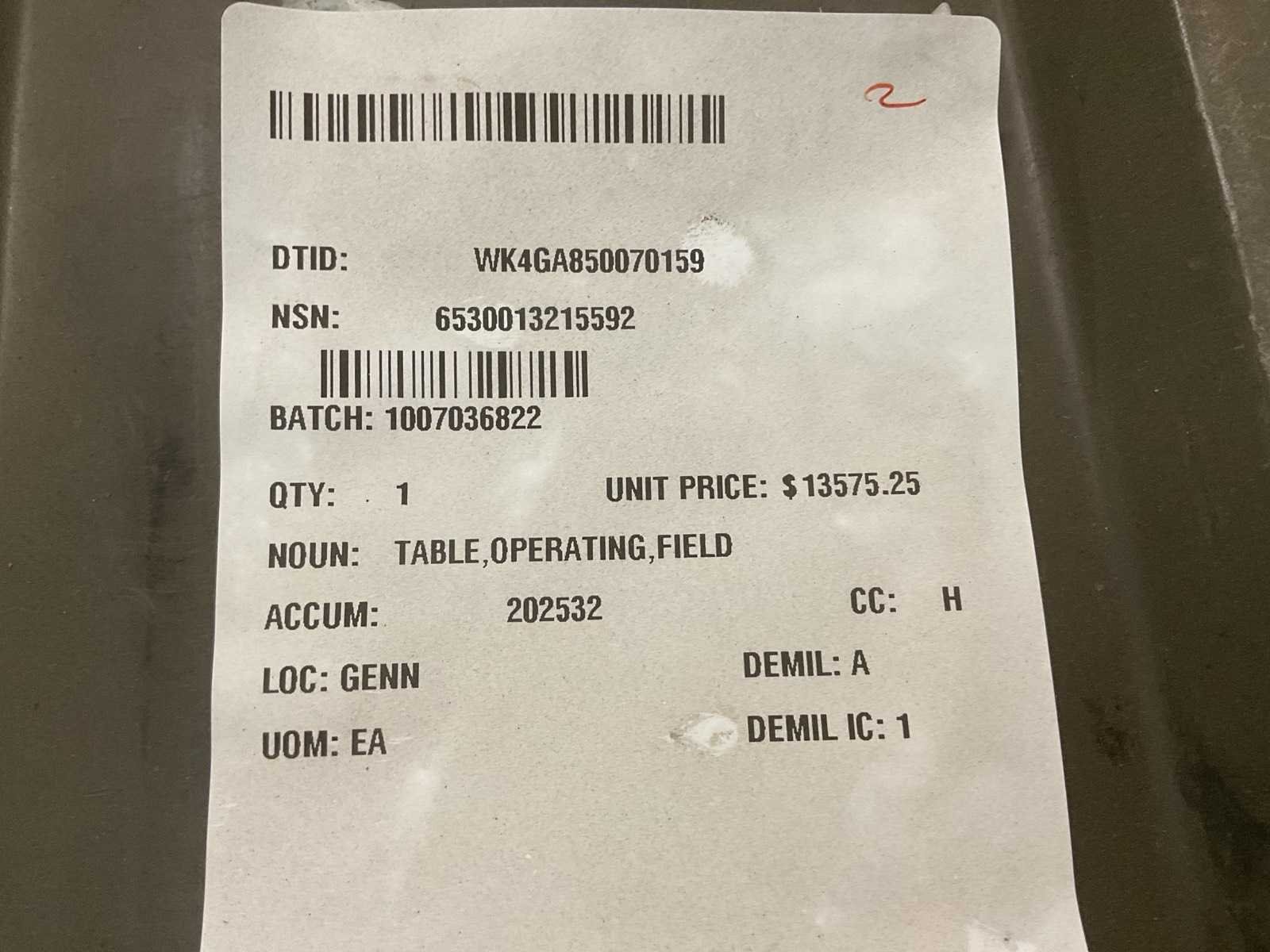 Operating field table