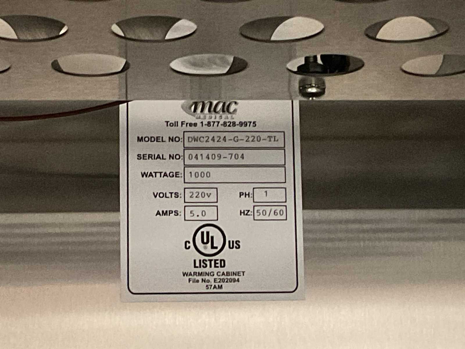 Mac medical dwc 24-24-g-220-tl warming cabinet