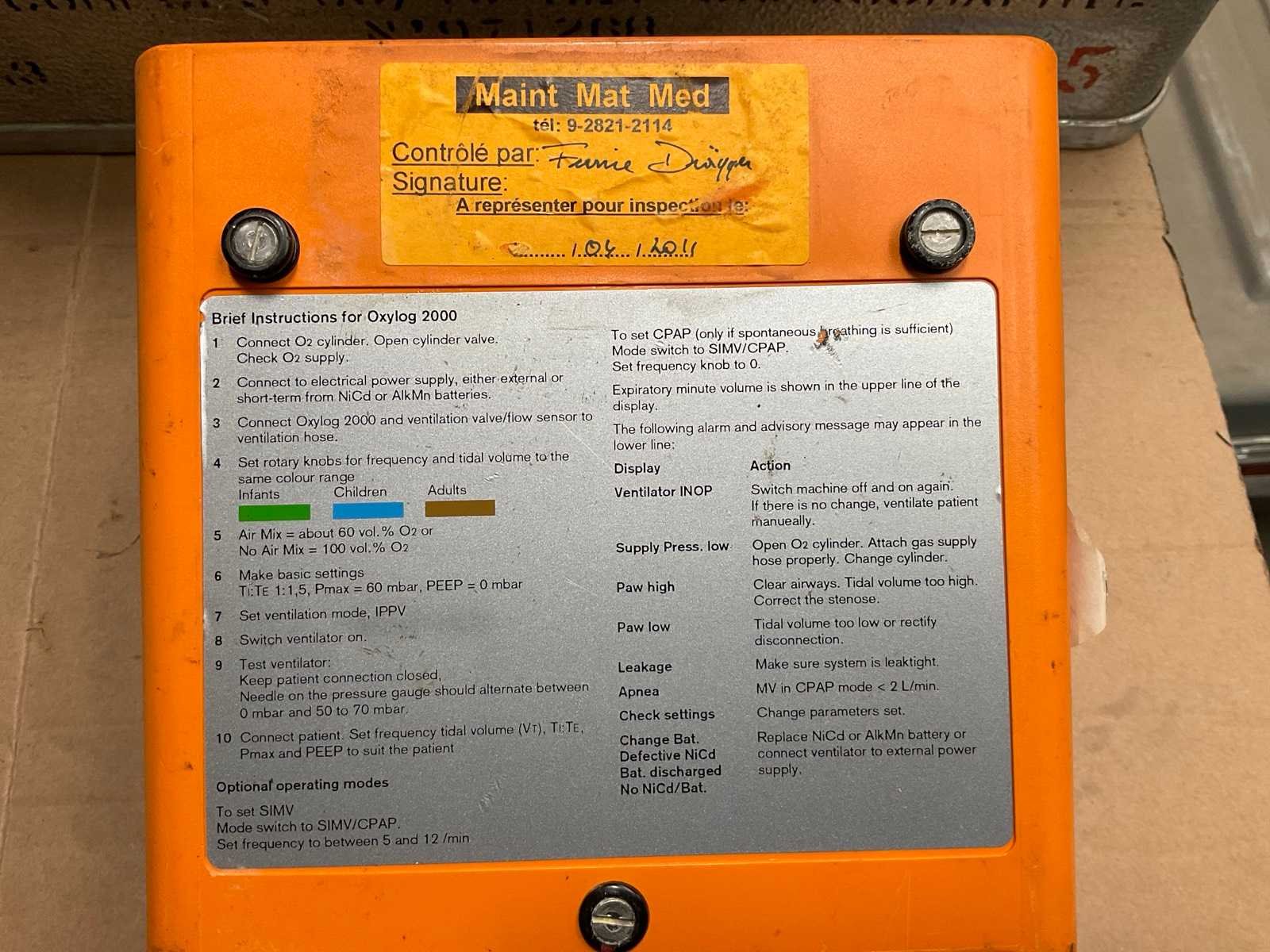 Dräger oxylog 2000 beademings apparat