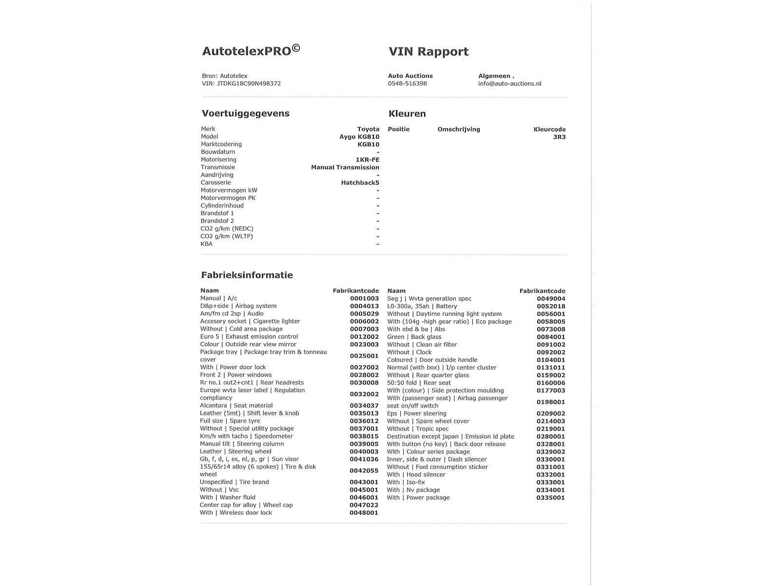 Voor vragen kunt u mailen naar info@auto-auctions.nl Kenteken: 72-NSV-8 Merk: Toyota Model: Aygo Type: 1.0-12V Aspir. Red Afgelezen kilometerstand: 186650km Cilinderinhoud: 998cc Vermogen (kW): 50kW Brandstof: Benzine Chassisnummer: JTDKG18C90N498372 NAP status: Logisch Datum eerste toelating: 2010-11-12 Datum eerste toelating (NL): 2010-11-12 APK vervaldatum: 2025-12-11 Vermogen (pk): 67hp Aantal zitplaatsen: 4 Kleur: rood Transmissie: Handgeschakeld Emissieklasse: 5 Aantal deuren: 4 Aantal sleutels: 2 Ledig gewicht: 805kg Aantal cilinders: 3 Carrosserie: Hatchback Onderhoudshistorie: Niet Aanwezig Carfax Link: https://was.carfax.eu/v0/api/ccdid/5100016408/svc/201/vinreg/72NSV8/checksum/eyJhbGciOiJIUzI1NiIsInR5cCI6IkpXVCJ9.eyJleHAiOjE3NzMwNjY3NTR9.zikFV4FGAA13hIC0HiFYPOUFjHmbqLG7buM9NsRQfvk Start en rijdt: Ja