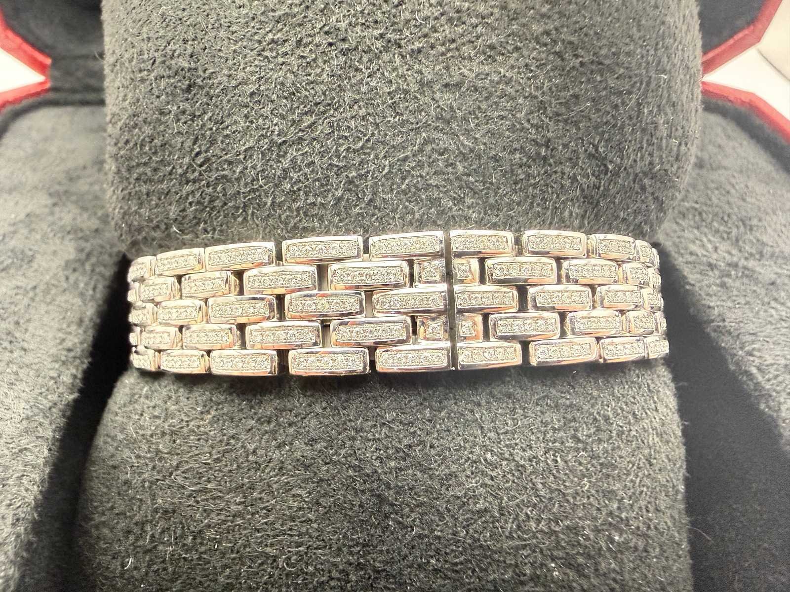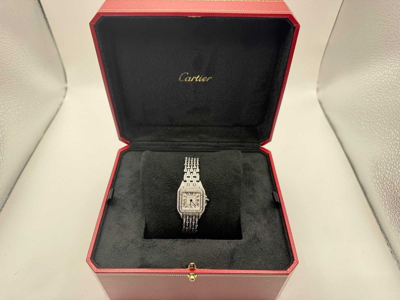 Featuring a perfectly proportioned square case, Roman numeral dial, and signature linked bracelet — all now beautifully enhanced with a full diamond setting. Key Features: Model: Cartier Panthère de Cartier Reference: WSPN0006 Year: 2025 Condition: Brand new, unworn Material: Stainless steel, fully set with natural diamonds Dial: White with Roman numerals Bracelet: Fully set with natural diamonds Movement: Quartz Set: Cartier box Please note: this is a customised watch, meaning it may include components that differ from the original factory specifications. Customisation can vary widely, so we highlight the following possibilities for full transparency: Aftermarket parts The watch may include third-party components (such as bezels, dials, hands, crystals or gem settings) that are not produced by the brand owner. These parts are often added for aesthetic reasons, but are not considered original by the manufacturer. Original parts from other models Some components (e.g. dials or bracelets) may have been sourced from other genuine watches by the same brand. While these parts are authentic, they were not originally fitted to this particular model or reference, which may affect collectability or eligibility for manufacturer service. Non-original parts In some cases, customised watches may include parts that are neither original nor manufactured by the brand. These components can affect the watch’s value. We encourage all bidders to carefully review the photos and description before placing a bid. Keep in mind: customised watches may not be eligible for official service or warranty from the brand. All bids should be placed with full awareness of the customisation status described above. Merk: Cartier Model: Panthere Bouwjaar: 2024 Referentienummer: WSPN0006 Materiaal kast: Steel / Diamonds Materiaal horlogeband: Steel / Diamonds Materiaal sluiting: Steel / Diamonds Wijzerplaat: White Roman Kastmaat: 22 mm