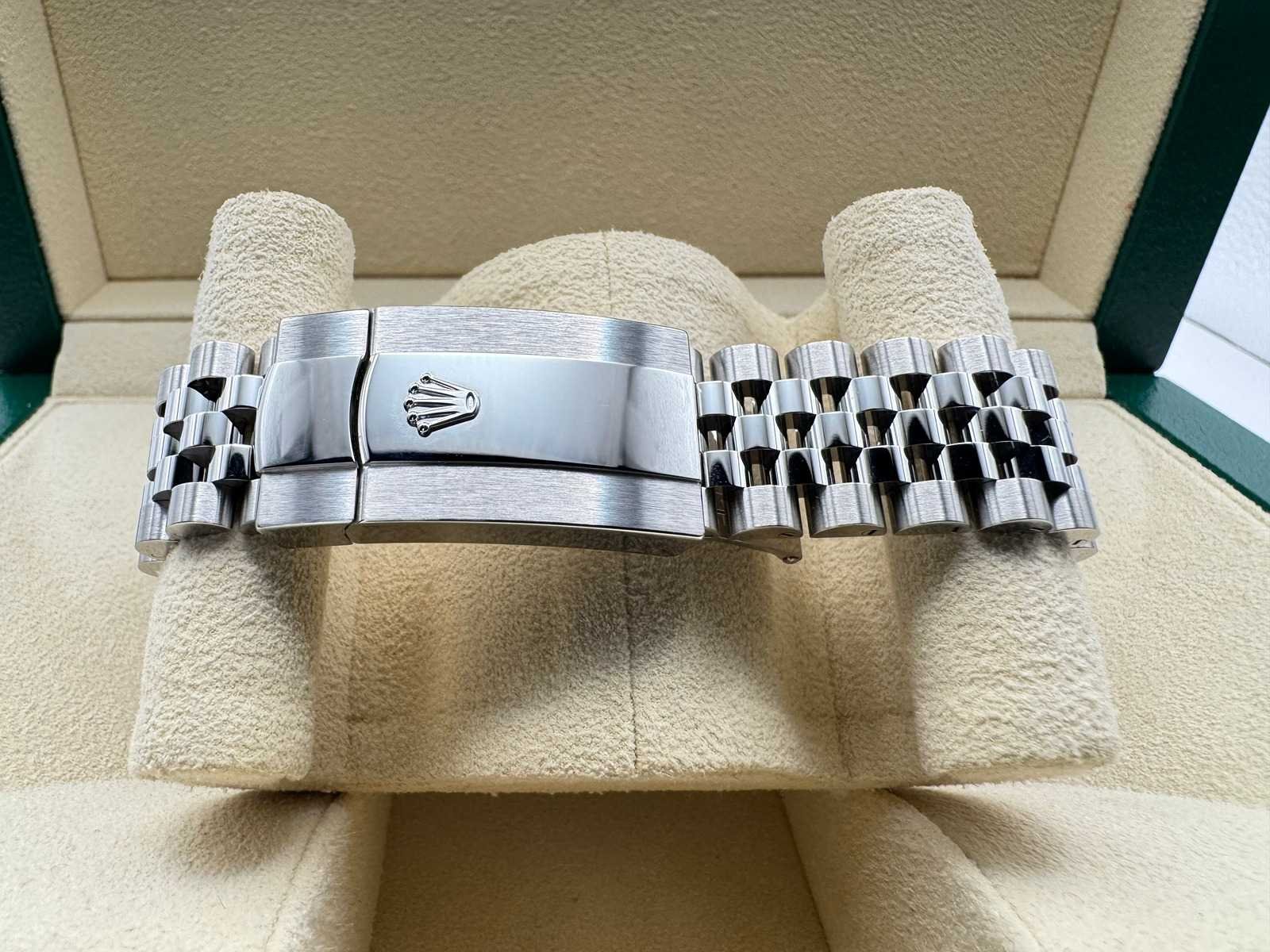 Condition: Brand new, unworn Set: Full set – includes original box, papers, Rolex warranty card, booklets, leather pouch, and Rolex tag Model: Datejust 41 (126334), 41mm Oystersteel case with white gold fluted bezel Features: Blue dial with diamond hour markers, Jubilee bracelet, automatic movement, 70-hour power reserve Warranty: Full 5-year international Rolex warranty Merk: Rolex Model: Datejust 41 Bouwjaar: 2025 Referentienummer: 126334 Materiaal kast: Steel Materiaal horlogeband: Steel Jubilee Fluted Materiaal sluiting: Steel Wijzerplaat: Blue Diamond Dot Kastmaat: 41 mm