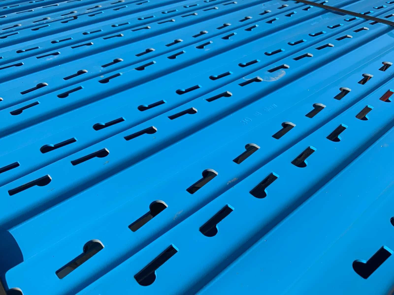 Staanders zijn 11000x1100x120mm; liggers zijn 3600x100x50mm; Merk: Stow Type: NT Aantal secties: 6 Sectie afm. b: 3600mm Sectie diepte: 1100mm Sectie afm. h: 11000mm Aantal staanders: 7 Aantal liggers: 62 Demontabel: true