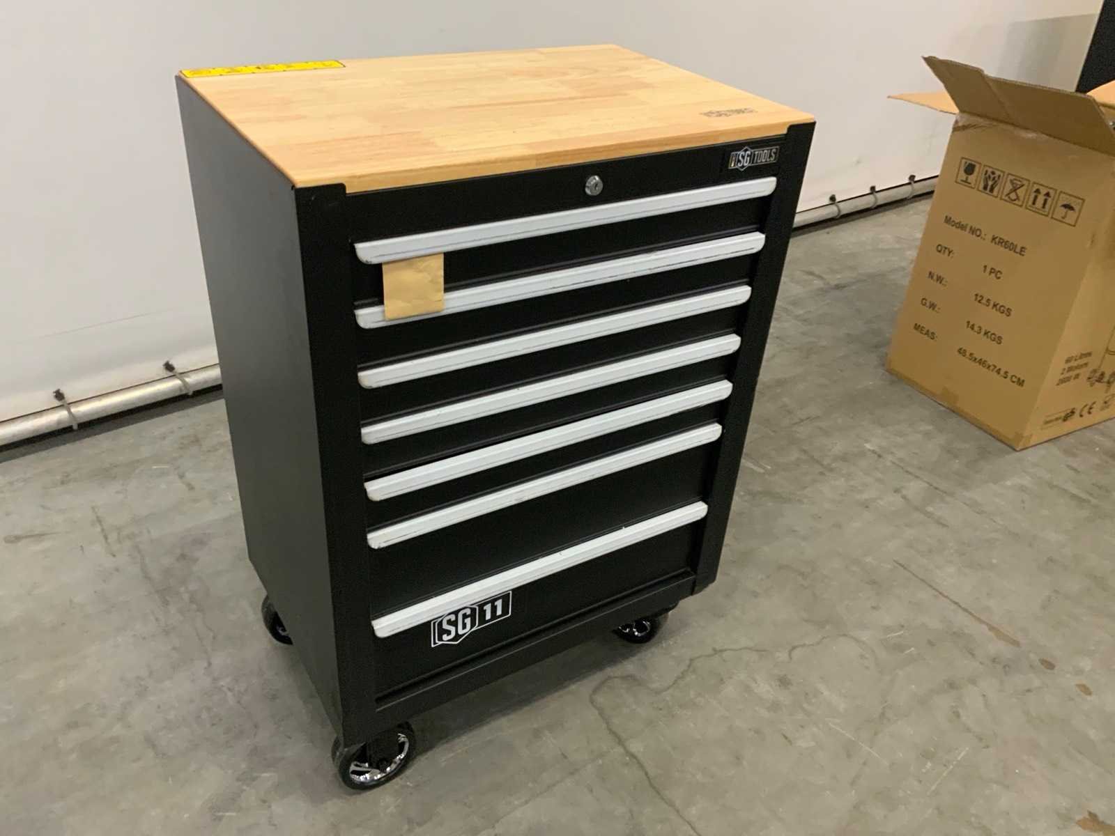 Gevallen; beschadigd; 258 delig; schroevendraaiers; bitset; tangen; sleutels; etc; zwenkwielen met rem; 7 lades; 6 gevuld; Merk: Stahlgruppe Type: SG11 Bouwjaar: 2023 Aantal laden: 7 Met inhoud: true Eigen gewicht: 80kg Totale afmeting L: 760mm Totale afmeting Breedte: 460mm Totale afmeting Hoogte: 980mm