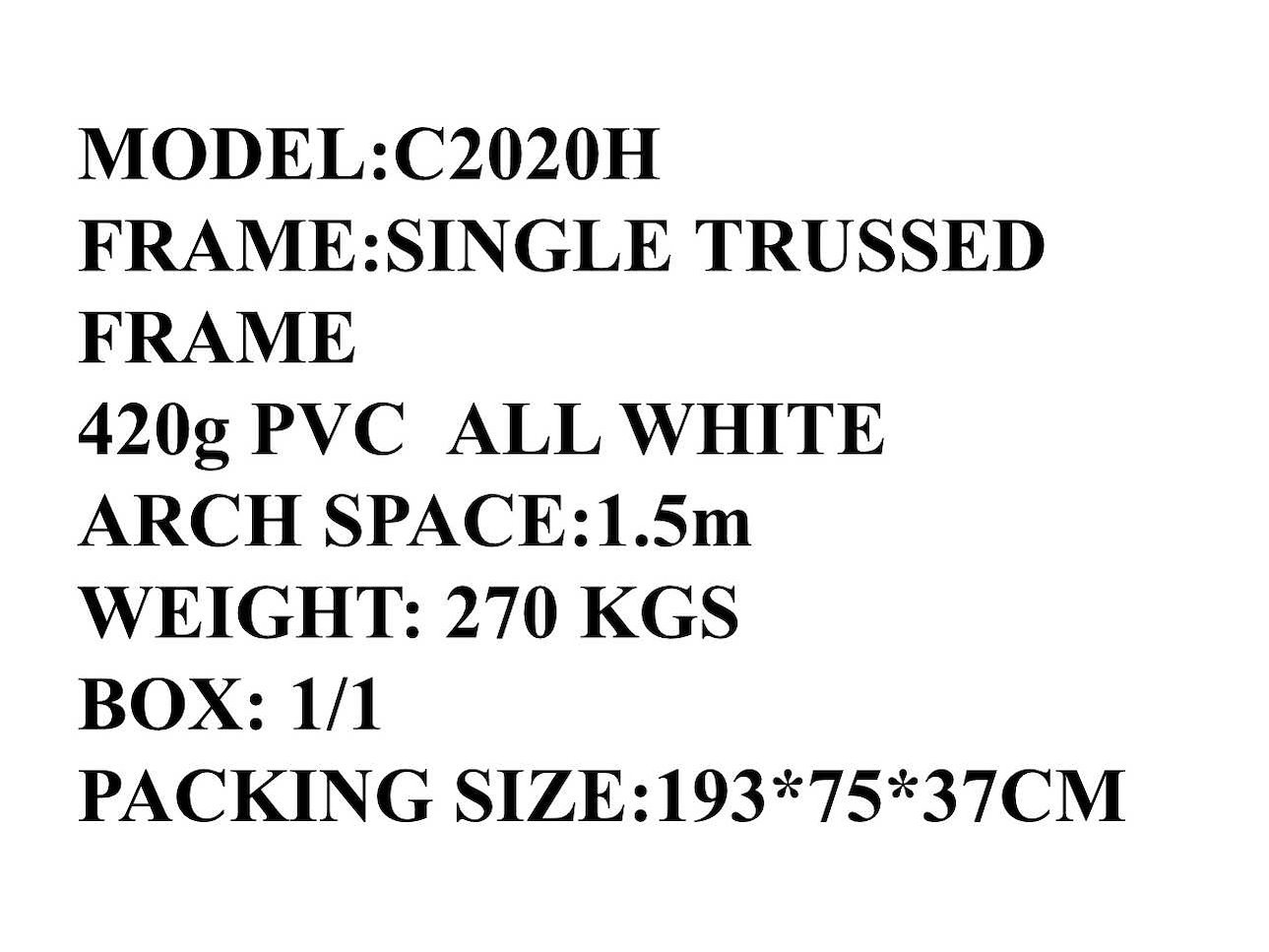LET OP: Kavel is niet beschikbaar op de kijkdag. Voorzien van opslagtent / opslag shelter; singel trussen-/buizensysteem; gegalvaniseerd; beide uiteinden een deur; materiaal 420 gram PVC cover; kleur wit; inclusief montage handleiding; ongebruikt in metalen kist (transport afmetingen 193x75x37 cm) LET OP AFHALEN OP AFSPRAAK IN VERBAND MET HET GEWICHT VAN DE KAVEL ! Merk: Rhino-Cross-Shelter Type: C2020H - 6x6x2 m met eindzeil Bouwjaar: 2025 Eigen gewicht: 270kg Totale afmeting L: 6000mm Totale afmeting Breedte: 6000mm Totale afmeting Hoogte: 2000mm