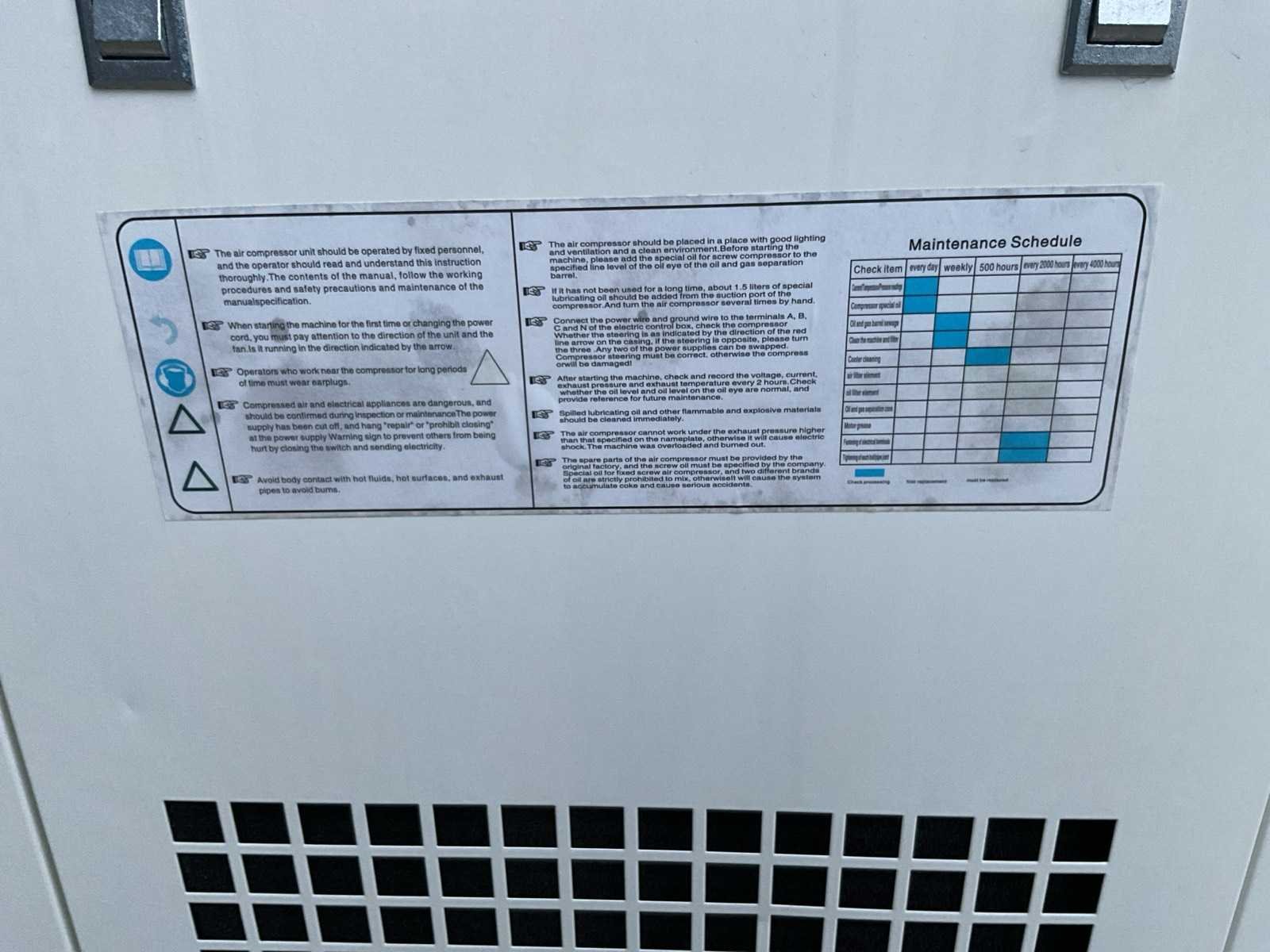 Voorzien van motorvermogen 7,5kw; voeding 380 V, 3-fase, 50Hz; schroefcompressor met inverter; 330 liter tank; werkdruk 8 bar; instelbare druk; digitaal bedieningspaneel; afmetingen 1400 × 800 × 1500 mm (L × B × H); eigen gewicht 300kg; nieuw Merk: Zelfir Type: Silenced screw Bouwjaar: 2025
