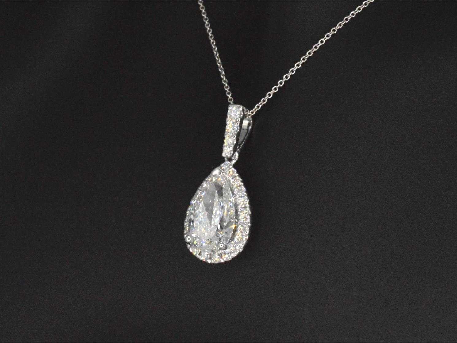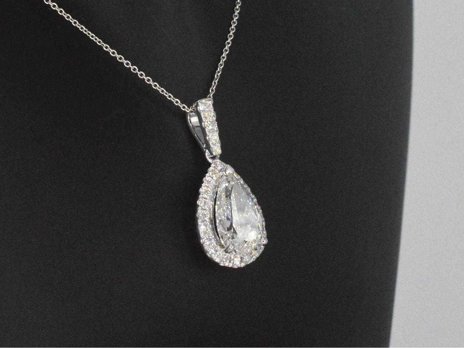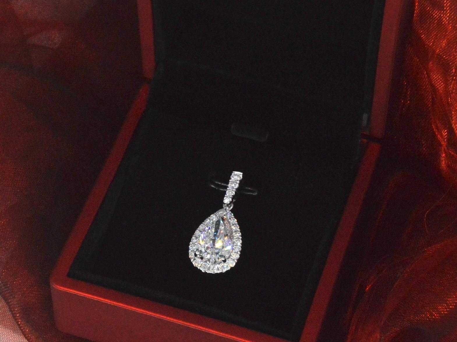 Samenvatting van gegevens Witgouden hanger met een druppelvorm briljant van 3.00 carat Diamant: Eco (Lab-grown); Aantal: 1 stuk; Slijpvorm: druppelvorm geslepen; Gewicht (carat): 3.00 carat; Kleur: E-F-G; Zuiverheid: VVS-VS; Slijpkwaliteit: Excellent / Very good; Certificaat: IGI; Diamant (secundair): Natuurlijke diamanten; Aantal diamanten: 25 stuks; Slijpvorm: Briljant geslepen; Gewicht (carat): 0.50 carat; Kleur: F-G; Zuiverheid: VS; Slijpkwaliteit: Zeer mooi; Juweel: Hanger (Excl. Ketting); Gewicht: 3 gram; Materiaal: 18k goud (750); Conditie: Nieuw; Verpakking: Luxe sieradendoos; Toelichting: De kwaliteit is overgenomen van het rapport behorend bij item. De waardebepaling is een beoordeling van een gecertificeerde diamantair, gebaseerd op consumentenprijzen.; Consumentenprijs: € 13.793,- Within 14 days Materiaal: Goud Voornaamste diamant: Eco (Lab-grown) Kleur diamant: E-F-G Gewicht diamant: 3.00ct Slijpvorm diamant: druppelvorm geslepen Slijpkwaliteit diamant: Excellent / Very good Zuiverheidsgraad diamant: VVS-VS Totaal gewicht: 3g Keurmerk: 750 Certificaat: IGI