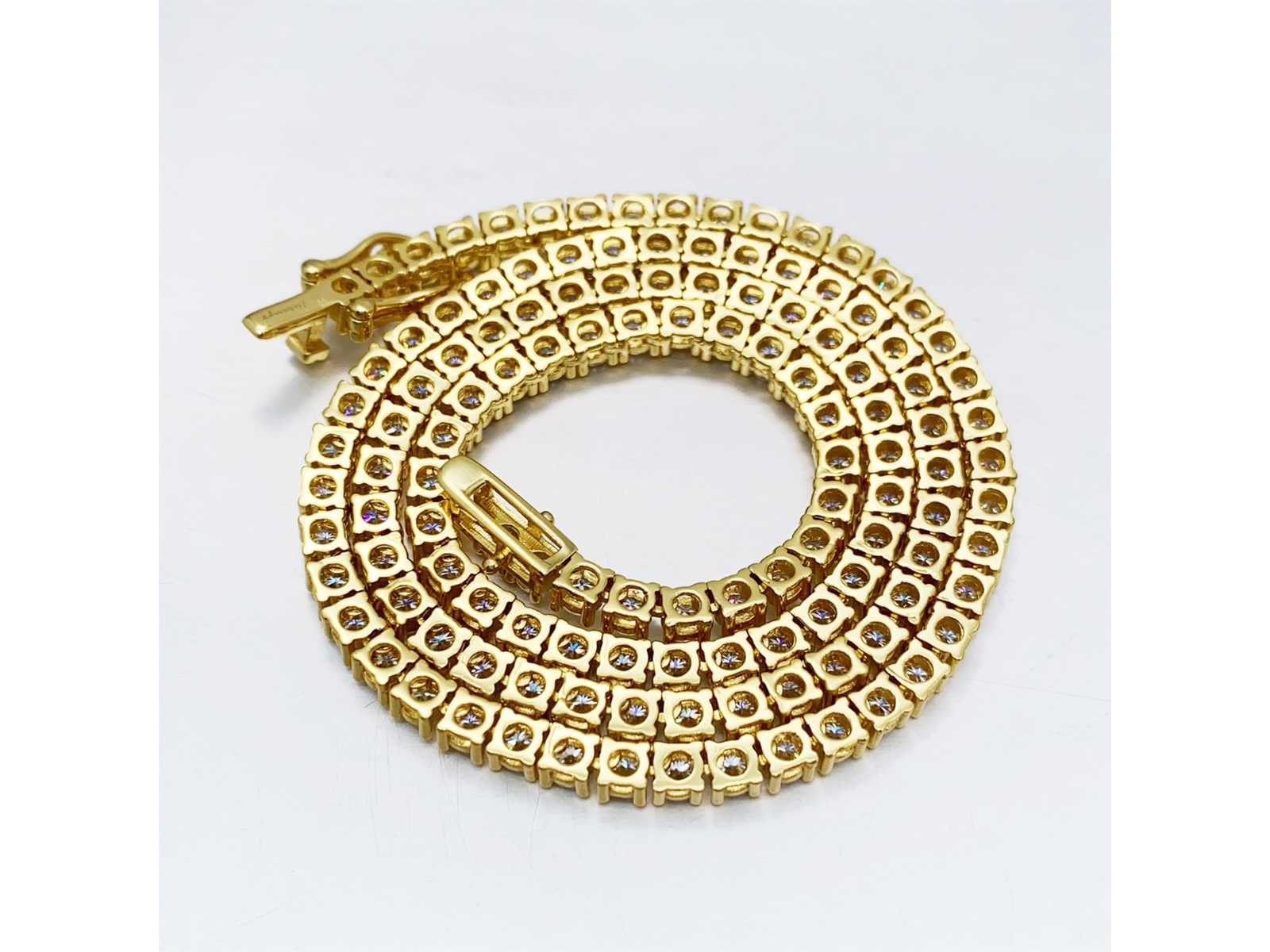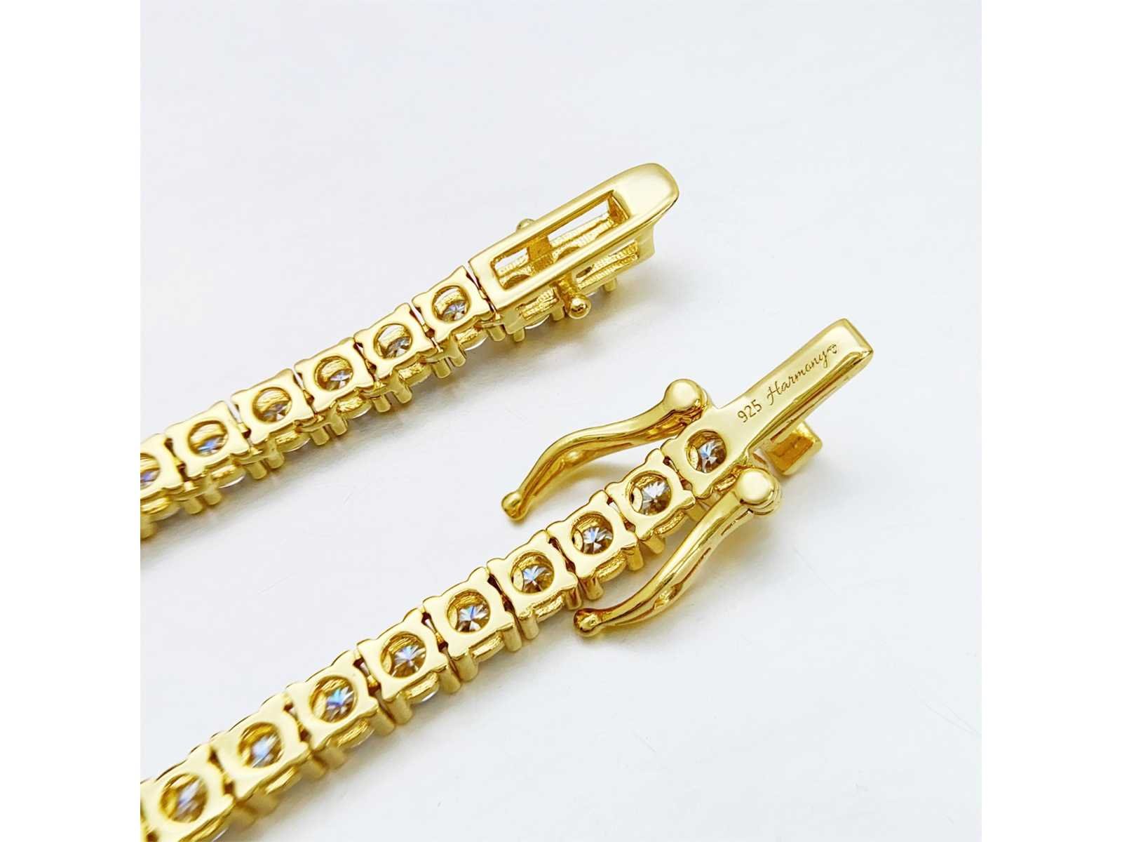 Samenvatting van gegevens Gele tenniscollier met briljanten van 12.50 carat totaal Edelsteen: Moissaniet; Aantal: 125 stuks; Slijpvorm: Briljant geslepen; Gewicht (carat): 12.50 carat; Kleur: D; Zuiverheid: VVS; Slijpkwaliteit: Zeer mooi; Juweel: Collier; Merk: Harmony; Gewicht: 23 gram; Afmetingen/lengte: 44 cm; Materiaal: Vermeil hoog gehalte sterling zilver (925); Conditie: Nieuw; Verpakking: sieradendoos of fluwelen etui; Toelichting: De kwaliteit is overgenomen van het rapport behorend bij item. De waardebepaling is een beoordeling van een gecertificeerde diamantair, gebaseerd op consumentenprijzen.; Extra informatie: Het gemeten gewicht van de edelstenen is volgens diamant maten; Consumentenprijs: € 2.600,- Within 14 days Materiaal: Zilver Edelsteen: Moissaniet Kleur edelsteen: D Totaal gewicht: 23g Keurmerk: 925 Slijpkwaliteit edelsteen: Zeer mooi Slijpvorm edelsteen: Briljant geslepen Zuiverheidsgraad edelsteen: VVS