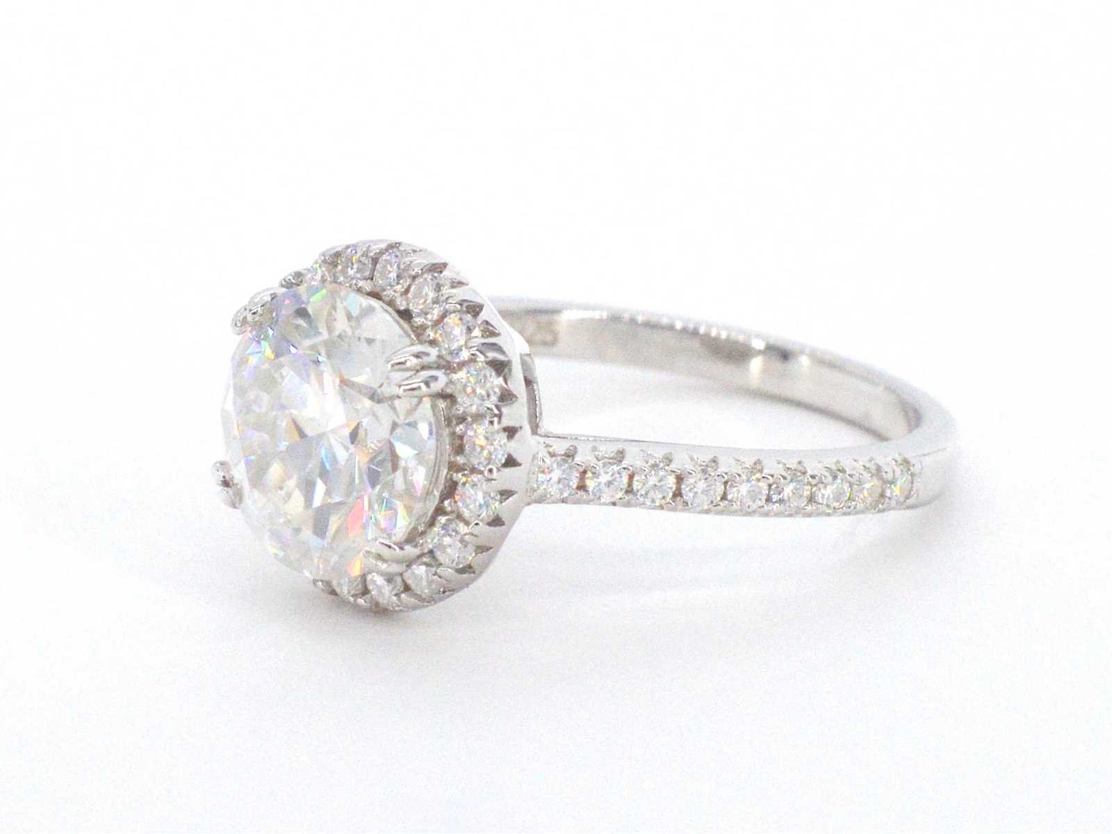 Samenvatting van gegevens Entourage ring met briljanten Edelsteen: Moissaniet; Slijpvorm: Briljant geslepen; Gewicht (carat): 3.00 carat; Kleur: E-F; Zuiverheid: VVS; Slijpkwaliteit: Zeer mooi; Edelsteen (secundair): Moissaniet; Slijpvorm: Briljant; Gewicht (carat): 0.50 carat; Kleur: E-F; Zuiverheid: VVS; Slijpkwaliteit: Zeer mooi; Juweel: Ring; Merk: Harmony; Gewicht: 3.4 gram; Ringmaat (op maat gemaakt*): 53 (17 mm); Materiaal: Geplatineerd hoog gehalte sterling zilver (925); Conditie: Nieuw; Verpakking: Sieradendoos of fluwelen etui; Toelichting: De kwaliteit is overgenomen van het rapport behorend bij item. De waardebepaling is een beoordeling van een gecertificeerde diamantair, gebaseerd op consumentenprijzen.; Extra informatie: Het gemeten gewicht van de edelstenen is volgens diamant maten; Consumentenprijs: € 1.400,- Within 14 days Materiaal: Zilver Edelsteen: Moissaniet Totaal gewicht: 3.4g Keurmerk: 925 Kleur edelsteen: E-F Slijpvorm edelsteen: Briljant geslepen Slijpkwaliteit edelsteen: Zeer mooi Zuiverheidsgraad edelsteen: VVS