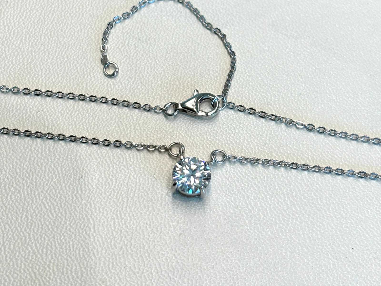 Samenvatting van gegevens Witte solitair halsketting met een briljant van hoge kwaliteit Edelsteen: Moissaniet; Aantal: 1 stuk; Slijpvorm: Briljant geslepen; Gewicht (carat): 1.00 carat; Kleur: E-F; Zuiverheid: VVS; Slijpkwaliteit: Zeer mooi; Juweel: Halsketting; Merk: Harmony; Gewicht: 2 gram; Afmetingen/lengte: 40 - 45 cm (verstelbaar); Materiaal: Geplatineerd hoog gehalte sterling zilver (925); Conditie: Nieuw; Verpakking: Sieradendoos of fluwelen etui; Toelichting: De kwaliteit is overgenomen van het rapport behorend bij item. De waardebepaling is een beoordeling van een gecertificeerde diamantair, gebaseerd op consumentenprijzen.; Extra informatie: Het gemeten gewicht van de edelstenen is volgens diamant maten; Consumentenprijs: € 760,- Within 14 days Materiaal: Zilver Edelsteen: Moissaniet Kleur edelsteen: E-F Totaal gewicht: 2g Keurmerk: 925 Slijpkwaliteit edelsteen: Zeer mooi Slijpvorm edelsteen: Briljant geslepen Zuiverheidsgraad edelsteen: VVS