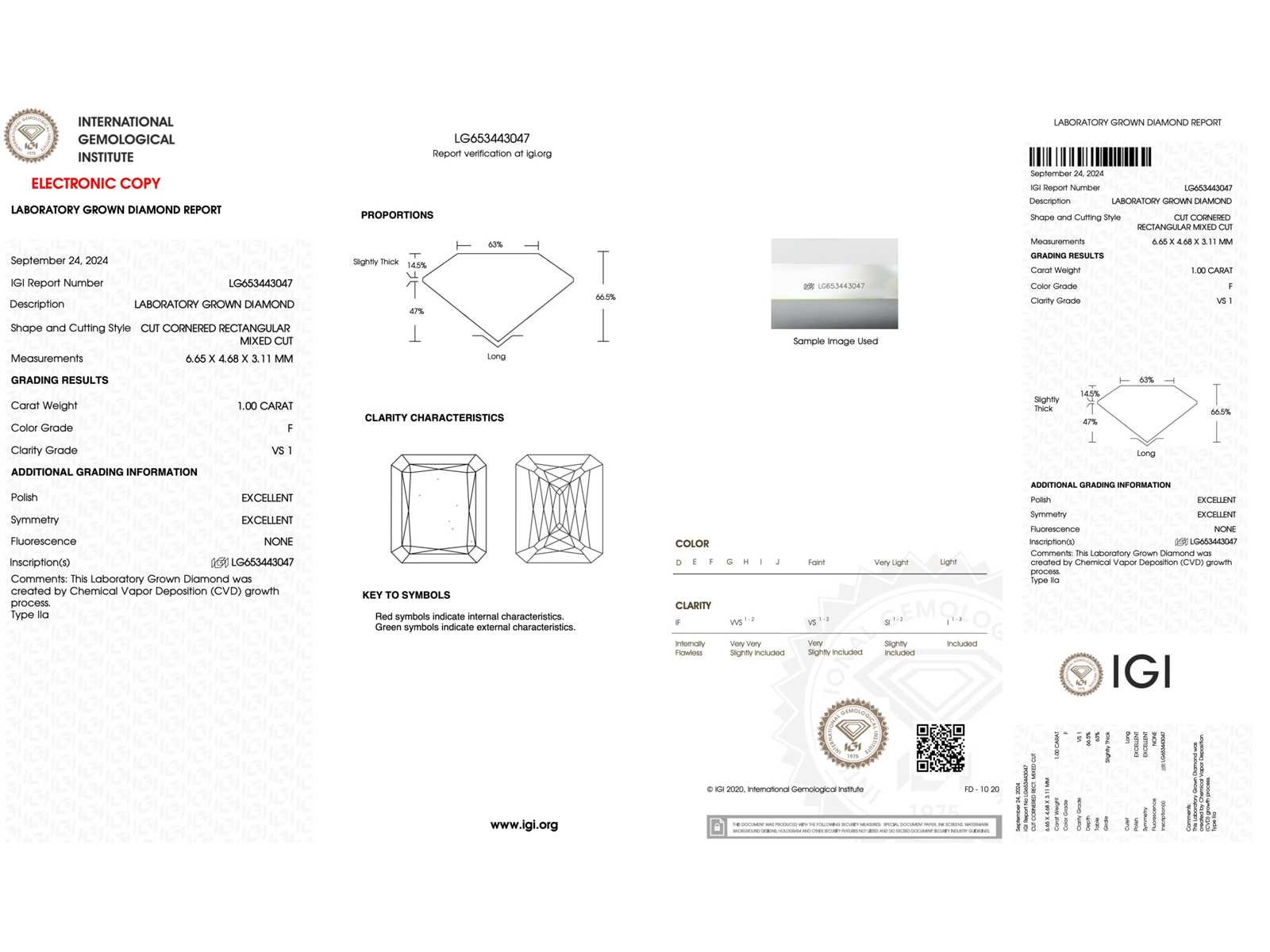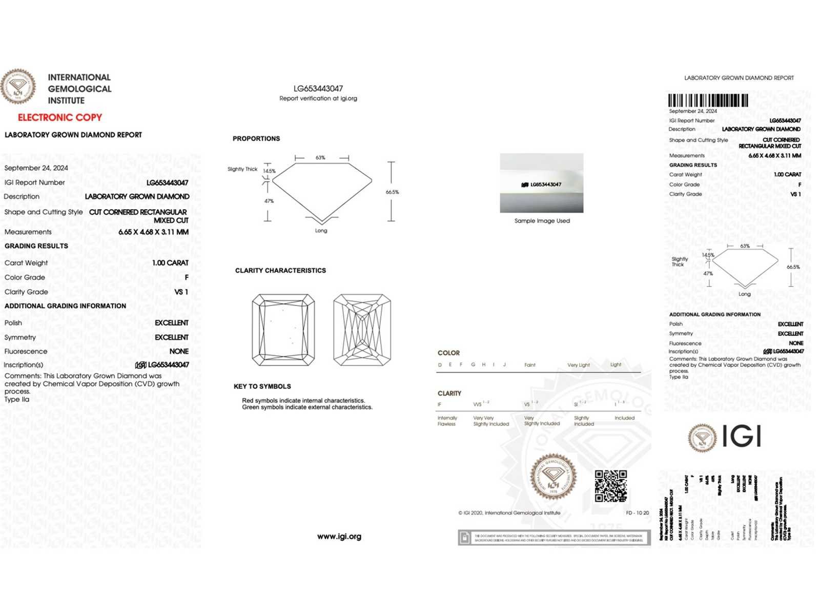 Samenvatting van gegevens Diamant - 1.00 carat Radiant geslepen diamant (gecertificeerd) Diamant: ECO (lab-grown); Aantal: 1 stuk; Slijpvorm: Radiant geslepen; Gewicht (carat): 1.00 carat; Kleur: F; Zuiverheid: VS1; Slijpkwaliteit: Excellent; Certificaat: IGI; Certificaat nummer: LG653443047; Conditie: Nieuw; Verpakking: Luxe sieradendoos; Toelichting: De kwaliteit is overgenomen van het rapport behorend bij item. De waardebepaling is een beoordeling van een gecertificeerde diamantair, gebaseerd op consumentenprijzen.; Consumentenprijs: € 3.375,- Within 14 days Voornaamste diamant: ECO (lab-grown) Kleur diamant: F Gewicht diamant: 1.00ct Slijpvorm diamant: Radiant geslepen Slijpkwaliteit diamant: Excellent Zuiverheidsgraad diamant: VS1 Certificaat: IGI