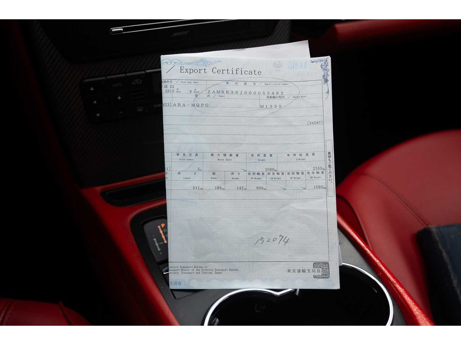 Ferarrimotor Merk: Maserati Model: Quattroporte Type: 4.7 V8 440pk Sport GTS Bouwjaar: 2010 Afgelezen kilometerstand: 64103km Cilinderinhoud: 4691cc Brandstof: Benzine Chassisnummer: ZAMKK39J000053482 Vermogen (pk): 440hp Aandrijving: Start en rijdt Aantal zitplaatsen: 5 Kleur: Zwart Transmissie: Automaat Stuurwiel: links Aantal deuren: 5 Aantal sleutels: 2 Aantal cilinders: 8 Carrosserie: Sedan Nationaliteit documenten: Japan Start en rijdt: Start and drive startinformatie : Start en rijdt